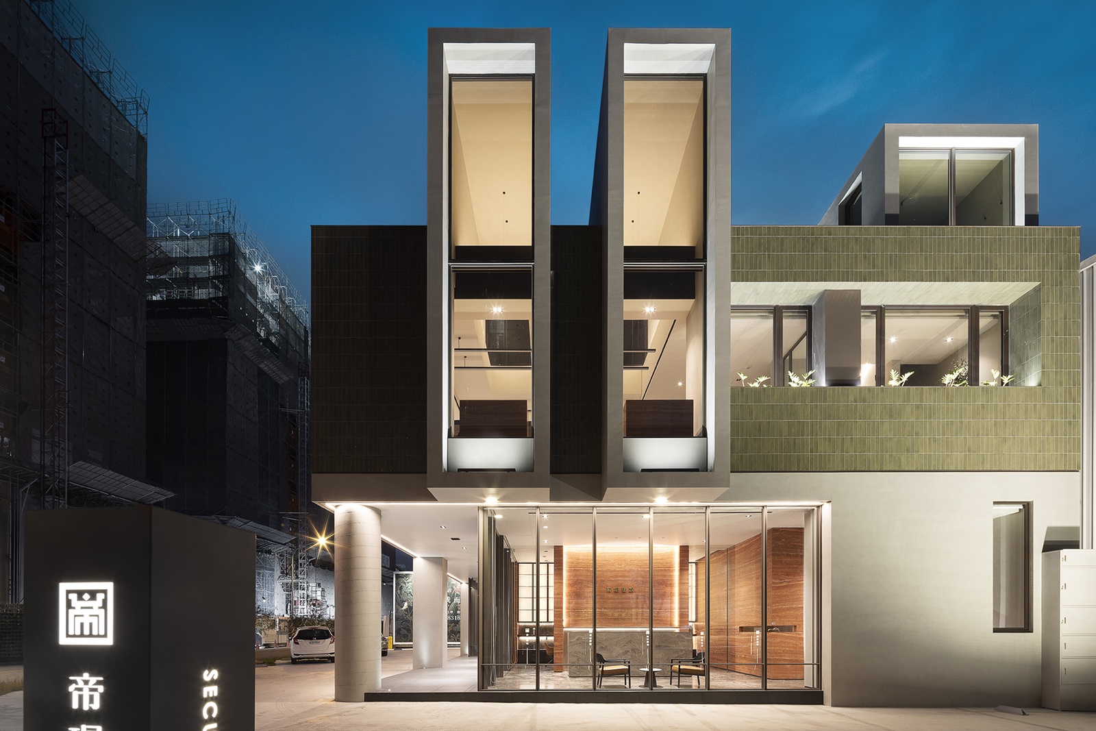 本案榮獲 2025 英國IAA倫敦設計獎 London Design Awards – 銀獎。本案設計結合辦公室與接待中心,外觀連貫卻動線分立,象徵理性與感性的平衡。以「光」為建築的語言,打造企業精神的具象化空間。幾何量體與穿透光線構築出節奏秩序,展現建設公司的專業形象,並與周邊自然綠意相融合,使建築成為可被光線閱讀的城市地景。