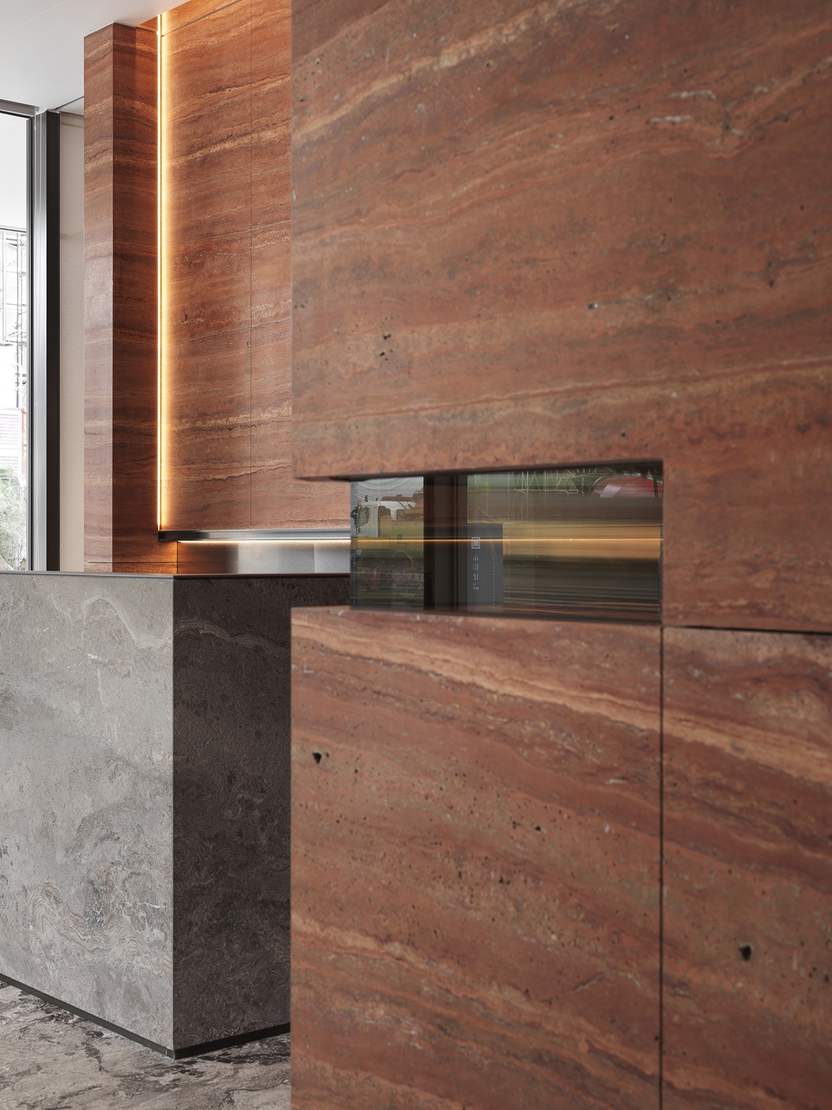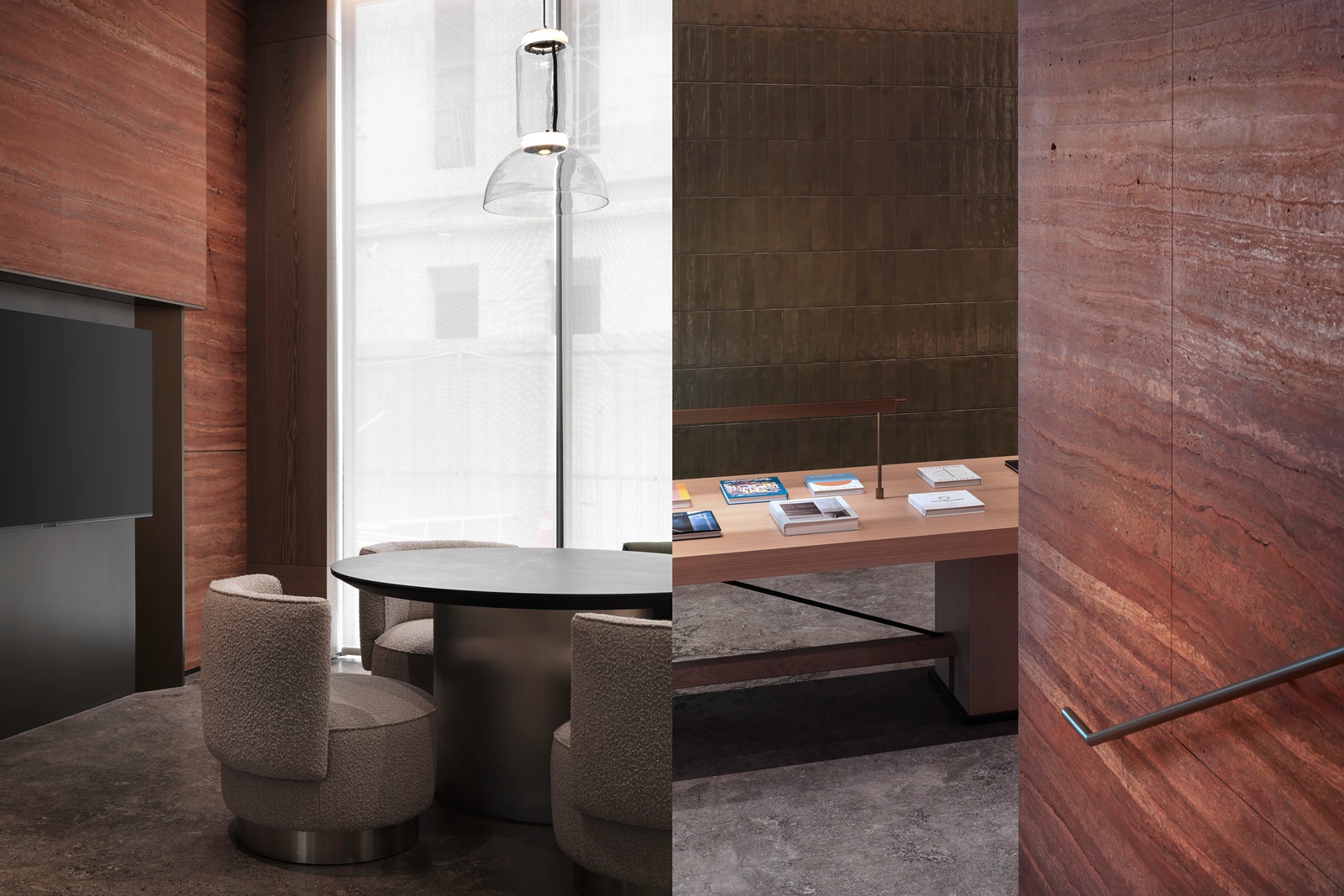 建築以企業「建材語言」打造獨特品牌辨識。運用紅洞石、綠釉磚與清水模等施工素材,呈現質感和美學表現,將企業精神融入建築。通透立面、挑高窗戶與天窗,打破室內外界線,強化自然光導引,讓光與綠意融入日常。理性結構中蘊含柔性舒適,建築成為以人為本的空間體驗。