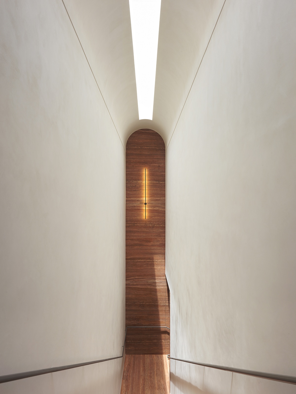 以「光線與秩序」為核心,詮釋企業誠信、專業與人文氣息。藉由自然光引導空間節奏,挑高立窗、圓拱樓梯與採光井的垂直延伸,呼應古典建築語彙。建築以企業的建材語言配合光影,並結合城市綠意。使用者能感受幾何秩序下的人本舒適與活力,亦使建築成為企業精神的延伸。