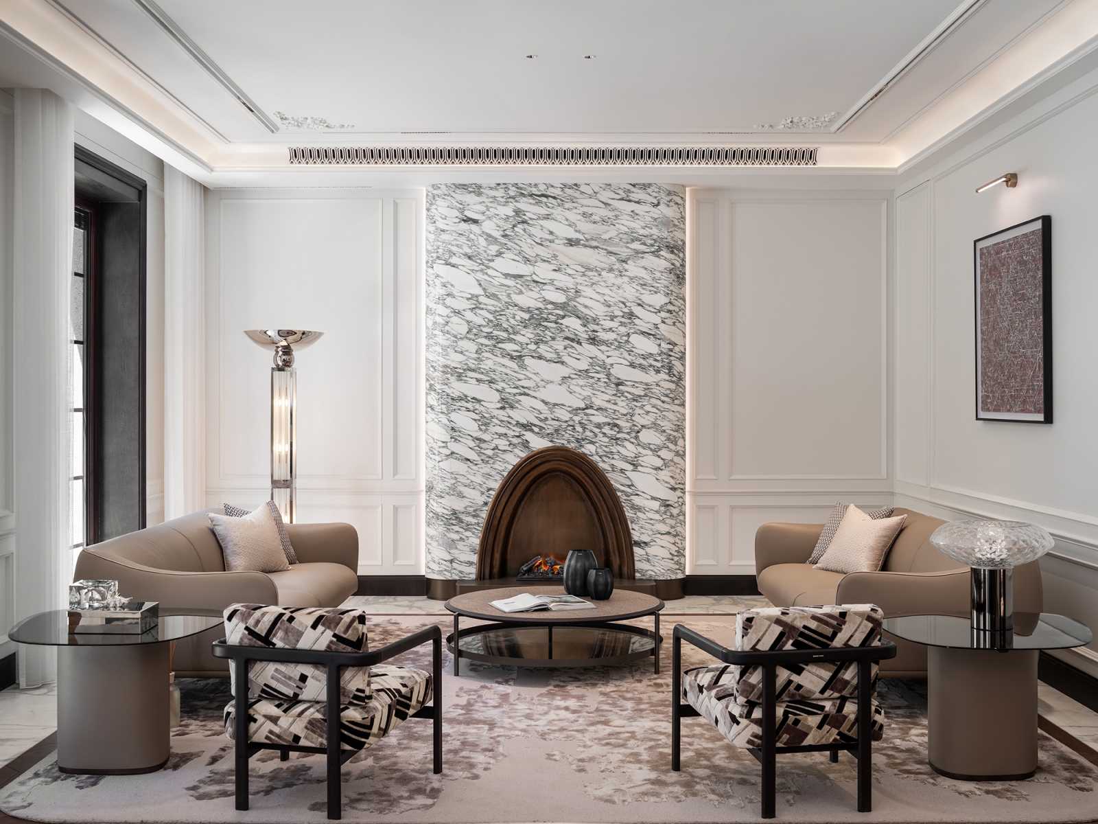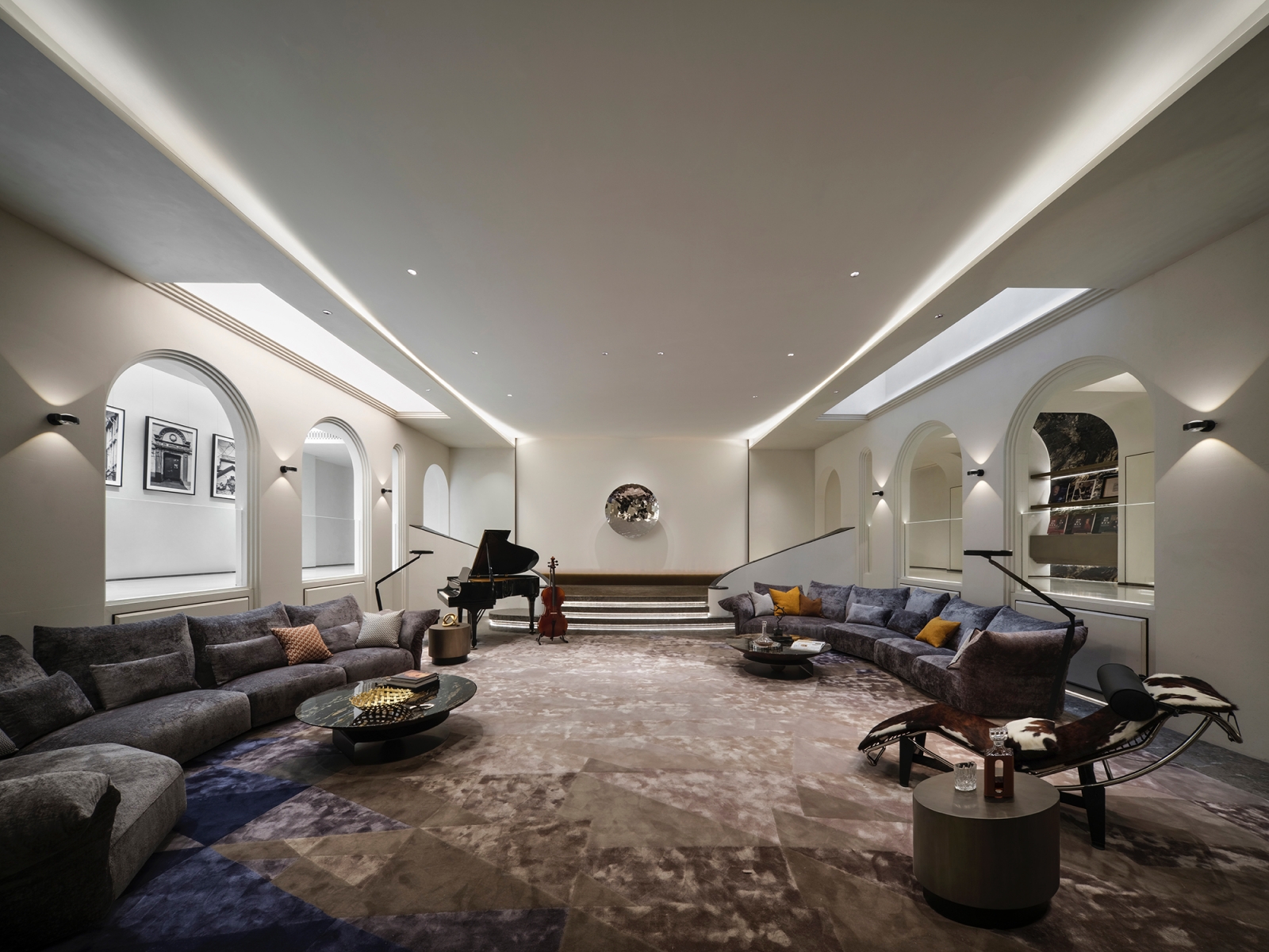 本案以音樂章節為靈感,透過多重敘事鋪陳生活節奏。團隊將空間融入劇場語彙,串聯社交、收藏與藝術展示,使日常成為流動的藝術場景。同時配置多功能安全屋,以防火、防煙、防盜機能回應現代居所的深層需求,於人文與科技並生之境,凝鍊出當代生活的從容與優雅。