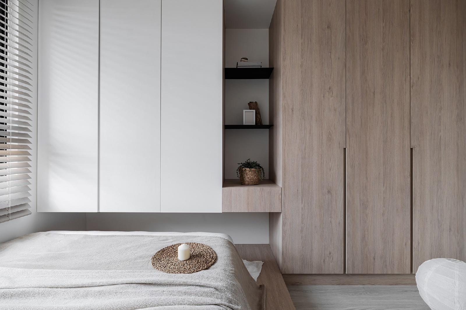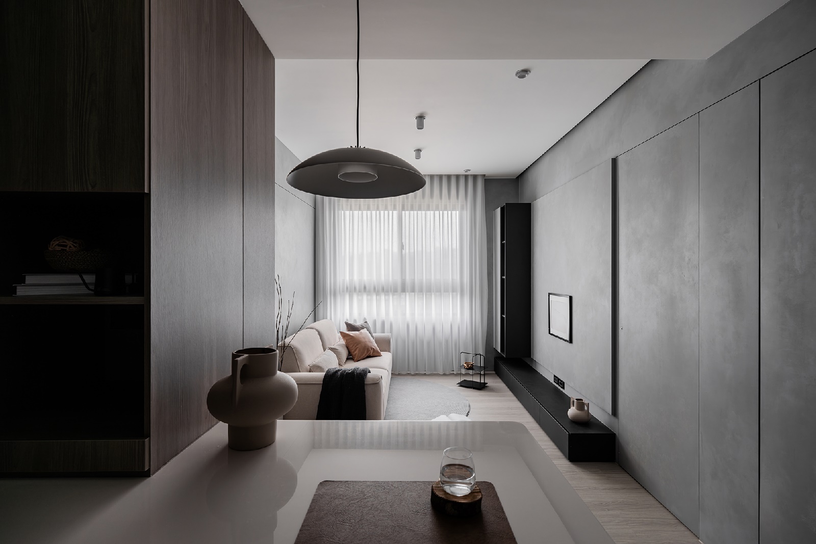 本案榮獲 2025 美國IDA國際設計獎 International Design Awards – 佳作。本案是為新婚夫妻打造的現代日式住宅。由於男、女主人作息不同且工作壓力大,因此特別期望擁有一個能放鬆身心、沉穩有序的居宅環境。設計上,團隊先是調整格局、採雙主臥設計,再導入溫潤的灰色塗料與木作元素,以此形塑寧靜、愜意的空間調性,讓屋主能享有舒適的生活體驗。