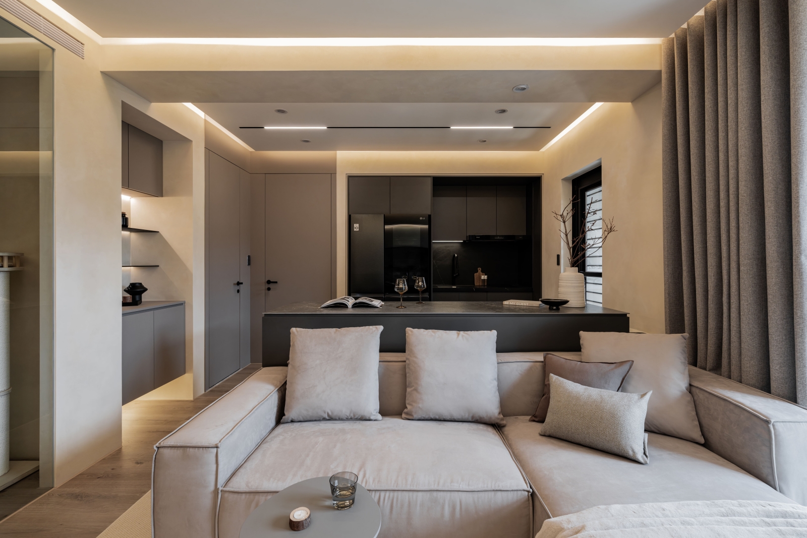 本案榮獲 2025 美國IDA國際設計獎 International Design Awards – 佳作。本案為老屋翻新住宅設計案,主要是針對業主的個人生活需求、喜好進行全面的擘劃。透過拆除隔間、改採開放式設計,擴展原先侷促、昏暗的空間,並搭配燈條設計和米色的色彩配置,營造愜意舒適的居住氛圍。另外,再活化畸零空間、強化吧台機能,便可為業主構築出兼具美感與功能性的質感居所。