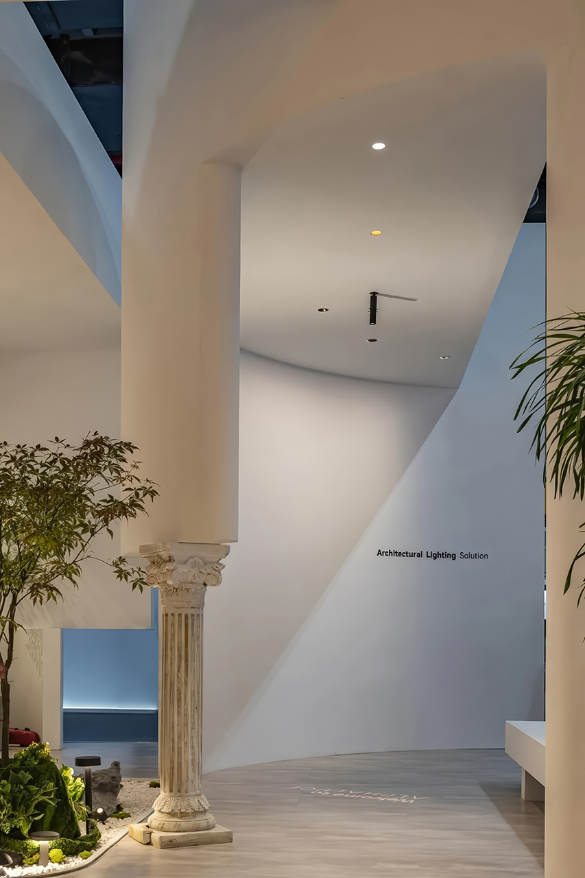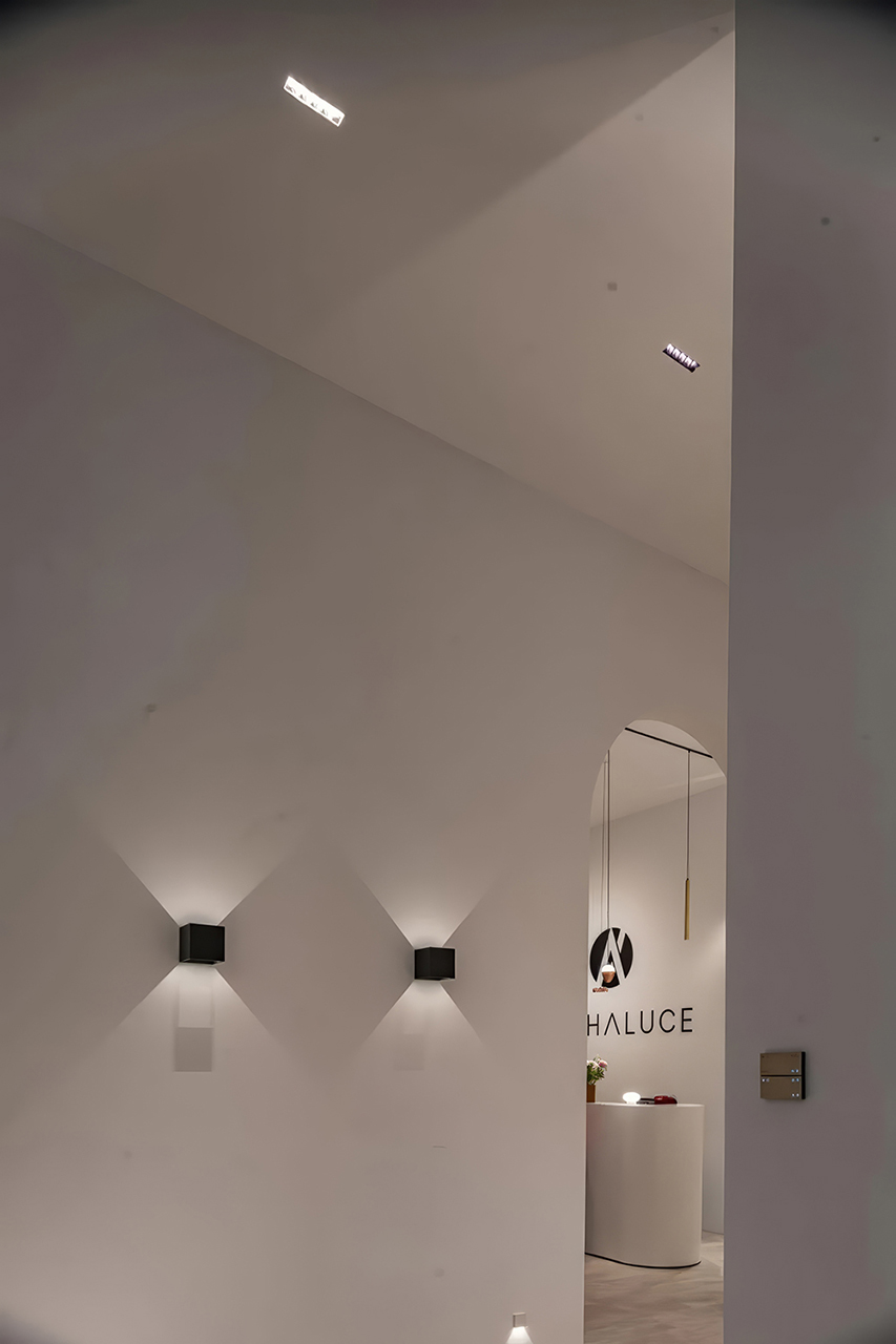 作為全球高端建築照明的革新者,ALPHALUCE以「極簡主義,燈光美學」 為核心理念,將光從功能性工具昇華為空間的靈魂畫師。在寧波・帝寶計畫中,ALPHALUCE的無邊框隱形照明技術讓光線如薄霧般滲透進建築肌理。嵌入式筒燈與隱藏式燈帶構成“光的骨骼”,均勻漫反射的暖白光勾勒出波浪形石材地面與漣漪狀吊頂的流動感,實現“見光不見燈”的極致體驗。這種「光與建築共生」的哲學,打破了傳統燈具的視覺幹擾,使空間回歸純粹本質。