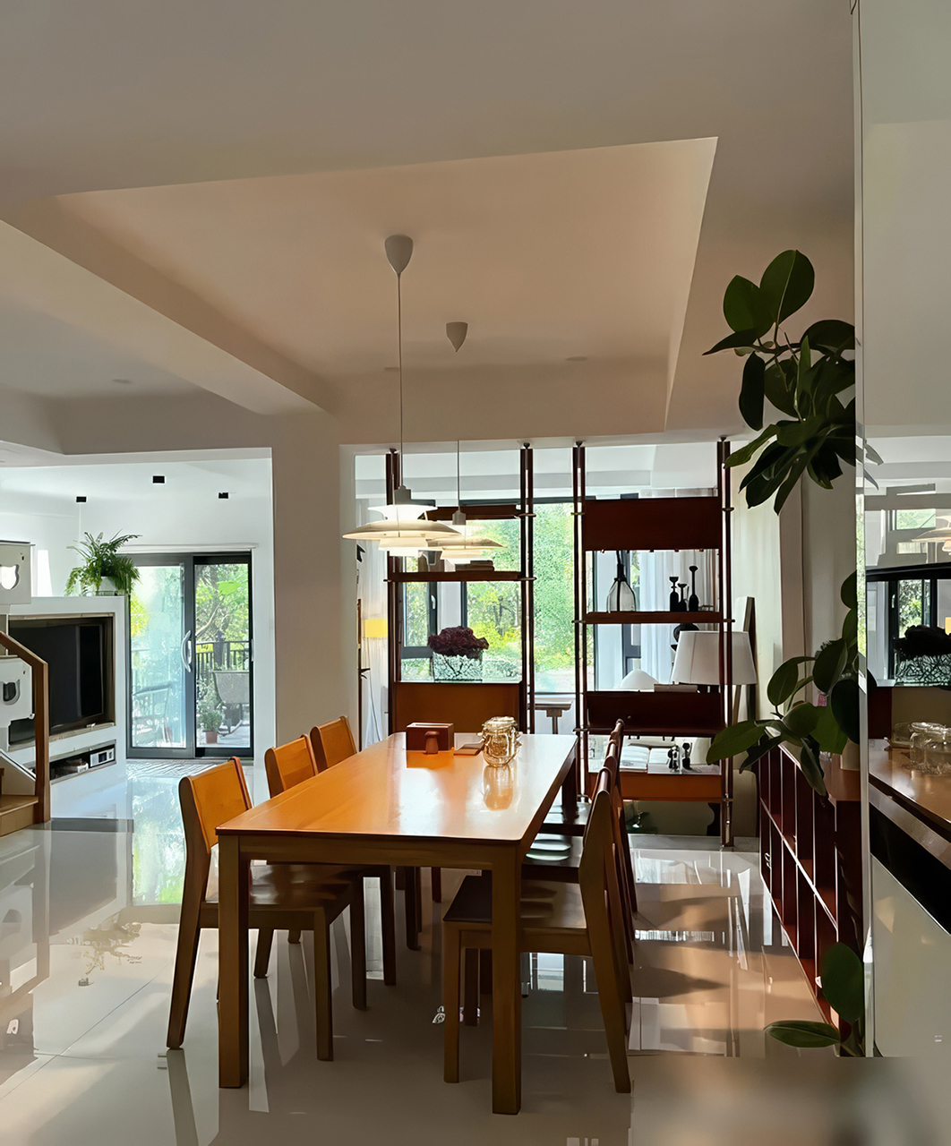 自然光是最理想的光源,它具有柔和、均勻、溫暖的特點,能讓人感受到大自然的氣息與活力。在設計中,可以透過大面積的落地窗、天窗、採光井等方式,將自然光引入室內空間。例如,在廣州的一間300平米住宅中,書房採用了三面環窗的設計,將充沛的日照轉化為天然照明系統,晨光斜射入室時,書本的油墨香彷彿都帶著陽光的溫度。客廳的750×1500mm灰色柔光瓷磚,經過精密計算的鋪設角度,讓自然光在室內形成柔和的漫反射,這種對光線的極致掌控,與嶺南傳統民居的冷巷設計異曲同工。