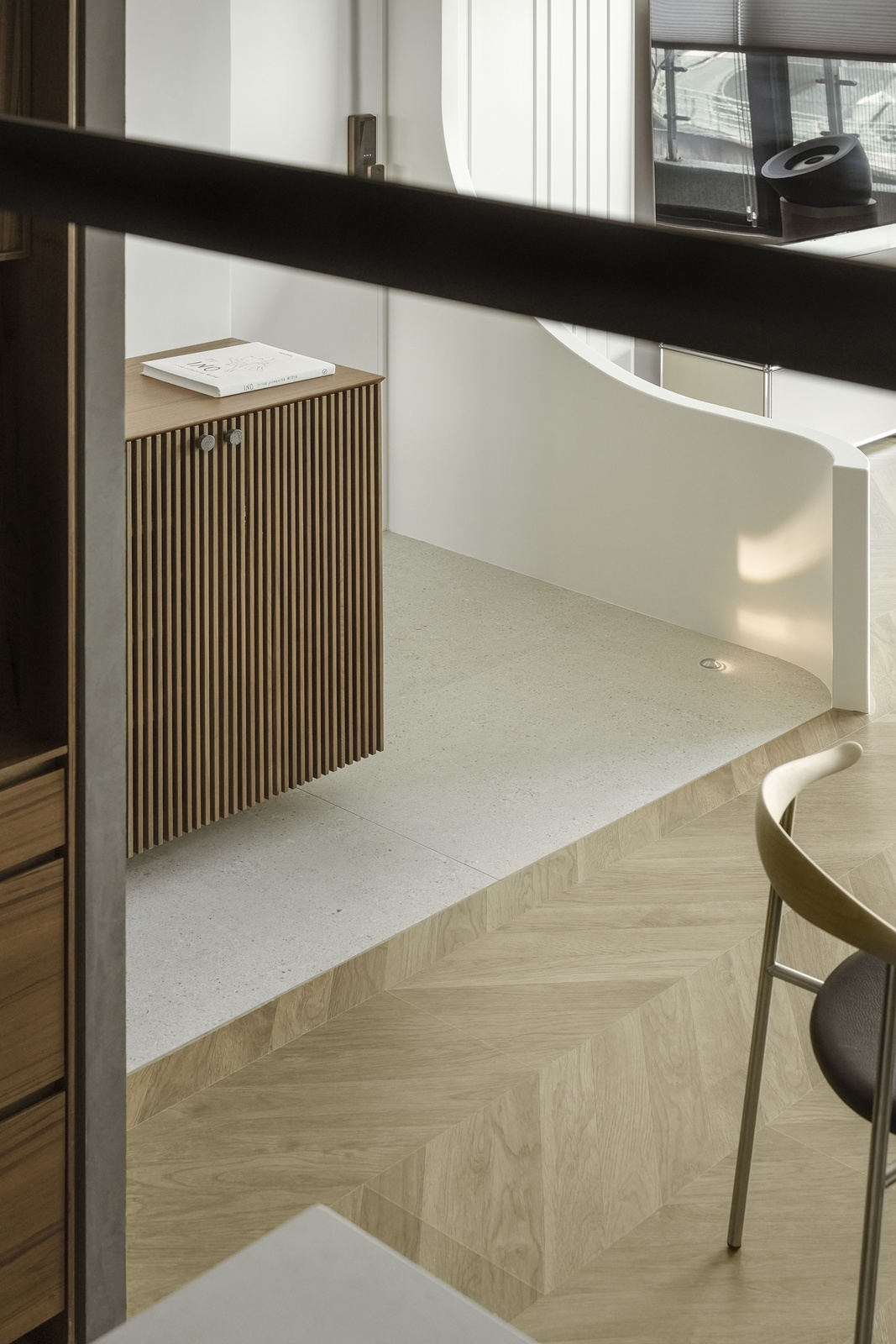 本案榮獲2025 英國IAA倫敦設計獎 第二季 London Design Awards -銀獎。本案為18坪(60平方公尺)現代住宅,設計核心在於「有限空間的最大化」,透過流暢動線與材質運用,兼具開闊感與高機能性。面對都會建築容易採光受限,導入雙層窗簾與間接光源,精準控制光線。空間主要運用木材紋理與特殊塗料,搭配低飽和的中性色彩。家具融合國際品牌與屋主收藏,低調中透出屋主個性,塑造細膩的摩登都會氛圍。