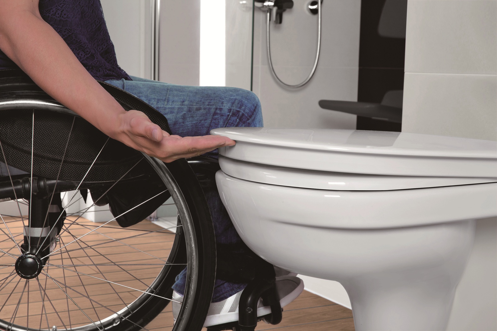 上下圖說︱Villeroy&Boch O.novo Vita馬桶除了輕鬆開闔的座蓋設計,46-48公分間的座高,更方便輪椅移動使用。同系列面盆亦提供了收納平台、雙側把手,安全更無虞。