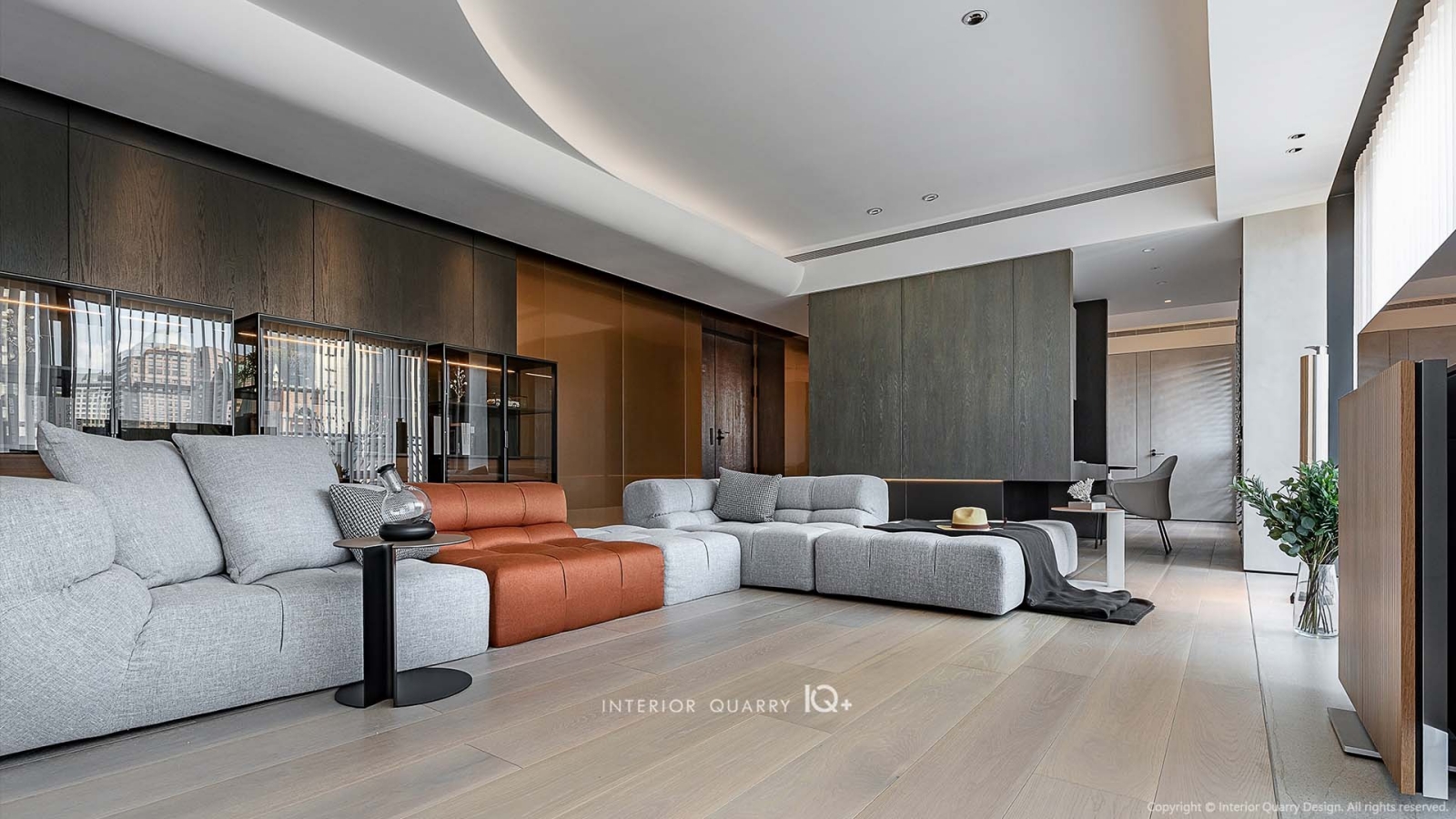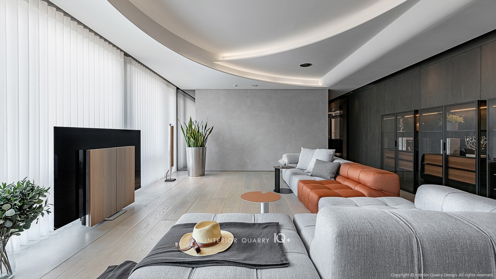 本案由唐林設計 陳渼蓁領銜規劃,以「慢・享受」為題,在繁華都會間尋得一隅靜謐。設計語彙以灰白鋪陳沉穩基調,再以橘色等跳色點綴,如晨曦初照般注入生息與活力。大面落地玻璃引入日光與綠意,使日夜流轉的景象映照於居所之中,化解都市的喧囂與壓迫,營造澄明而舒心的空間氛圍。整體以大坪數室內設計格局為基底,融合台北豪宅設計與台中豪宅設計的溫潤氣質,並延展高雄豪宅設計的遼闊視野,構築一處雅緻的現代棲居。
