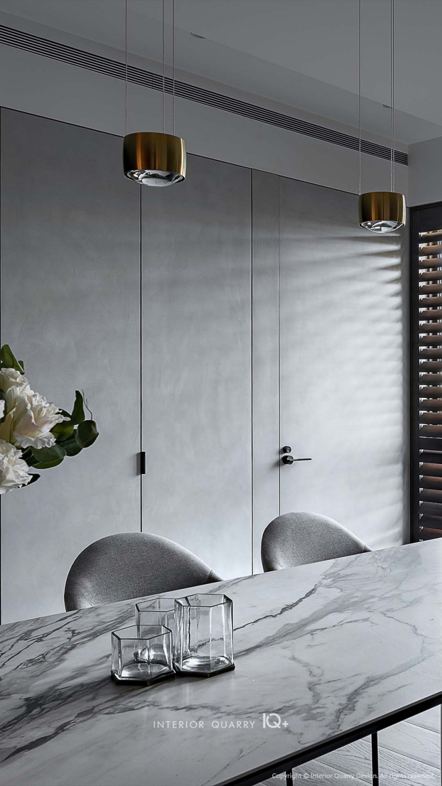 - 餐敘氛圍:白色大理石桌搭配圓形吊燈,凝練優雅焦點。