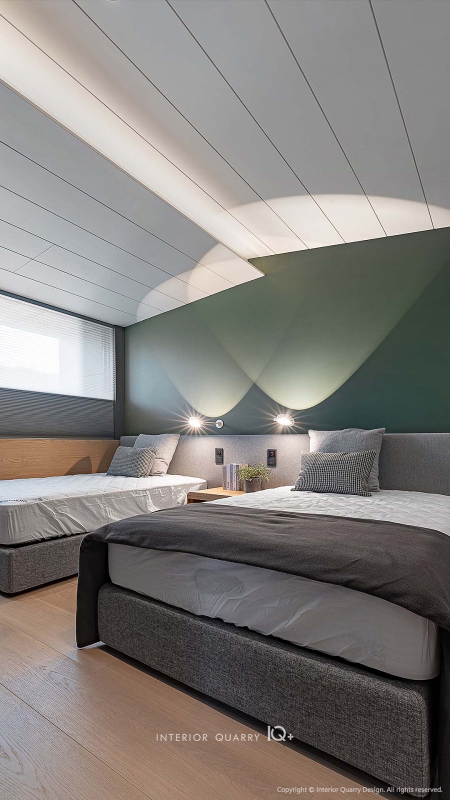 - 臥室情境:灰黑白色調交織,形塑沉穩柔和的休憩場域。