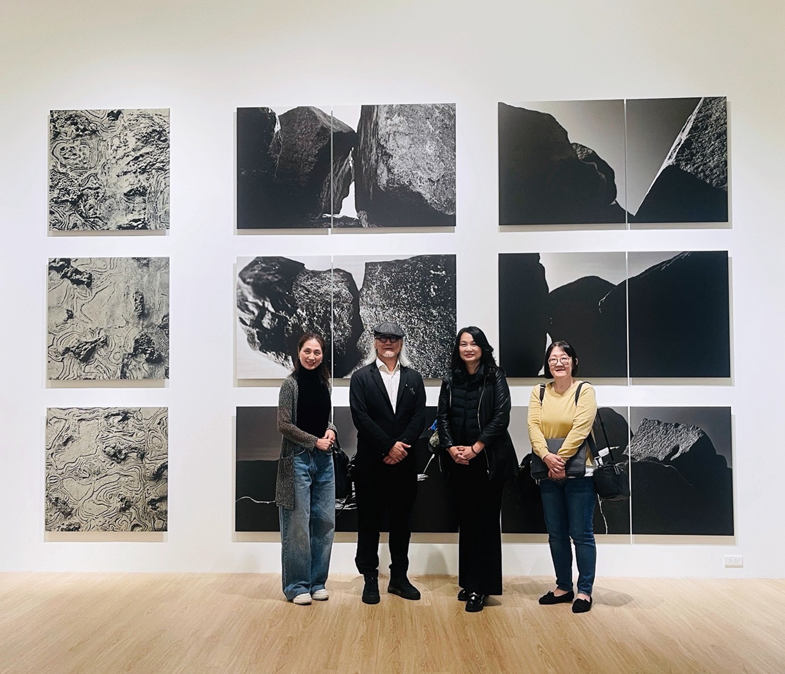 展覽從「石言」軸線展開。在《靈石不語》系列中藝術家以高反差黑白攝影作為主導語言,將澎湖的玄武岩與咕咾石從地質學標本提升為哲學的符號。攝影的力量在於其隔離與純化:玄武岩的巨石形體在鏡頭下成為了「創世的絕對性」,而咕咾石牆面經海風蝕刻的紋理則成為了「生存的集體記憶」。攝影的光影辯證,精準地捕捉了海德格爾所言「存在的啟示」(Aletheia),讓物質的靜默轉化為最深沉的言語。