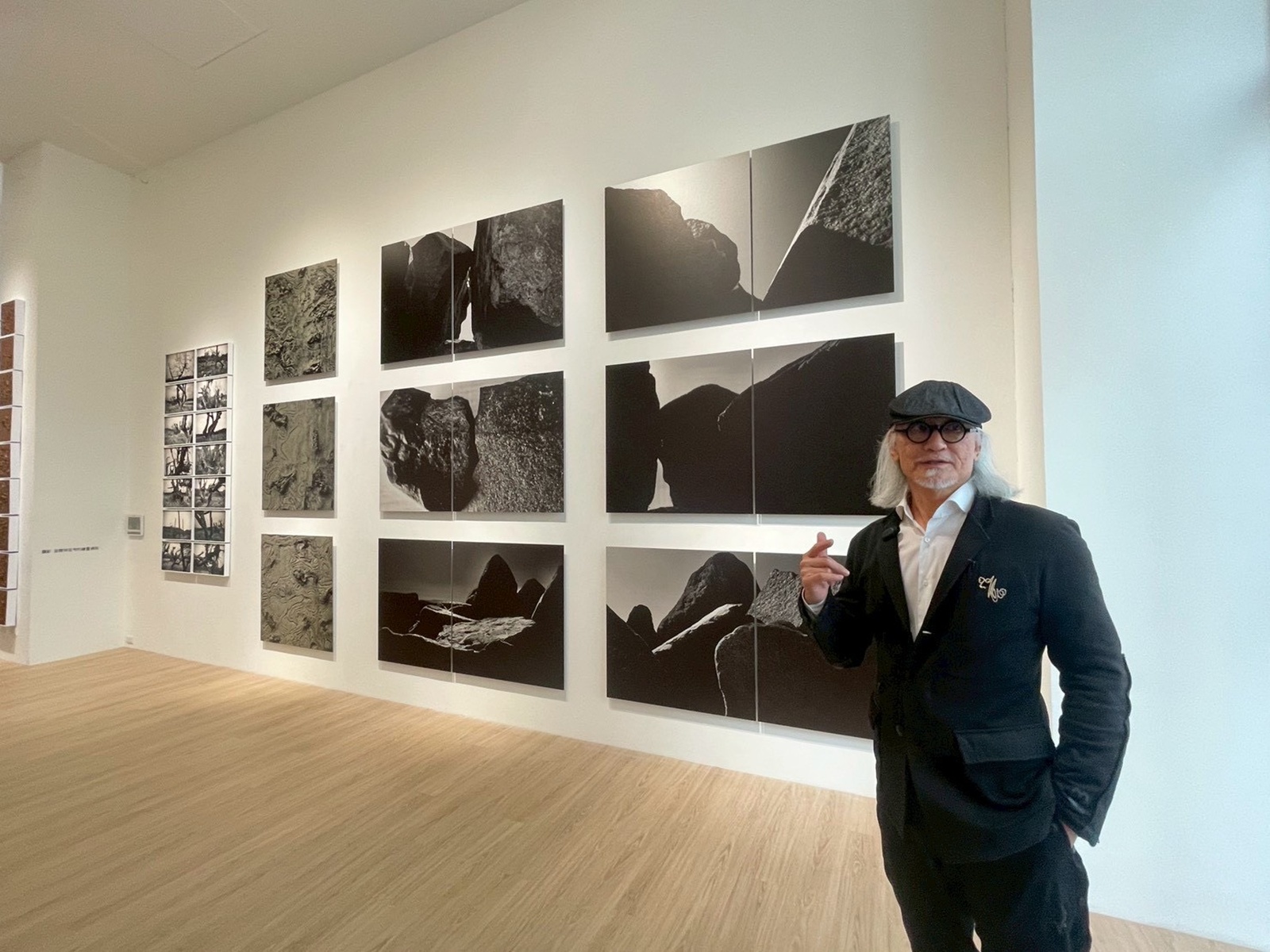 展覽從「石言」軸線展開。在《靈石不語》系列中藝術家以高反差黑白攝影作為主導語言,將澎湖的玄武岩與咕咾石從地質學標本提升為哲學的符號。攝影的力量在於其隔離與純化:玄武岩的巨石形體在鏡頭下成為了「創世的絕對性」,而咕咾石牆面經海風蝕刻的紋理則成為了「生存的集體記憶」。攝影的光影辯證,精準地捕捉了海德格爾所言「存在的啟示」(Aletheia),讓物質的靜默轉化為最深沉的言語。