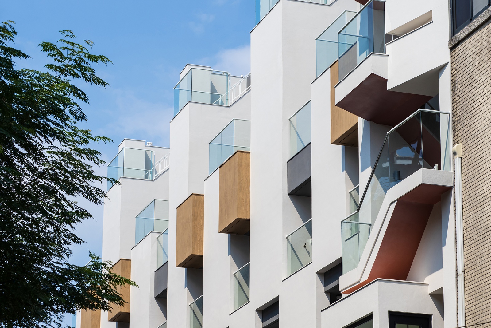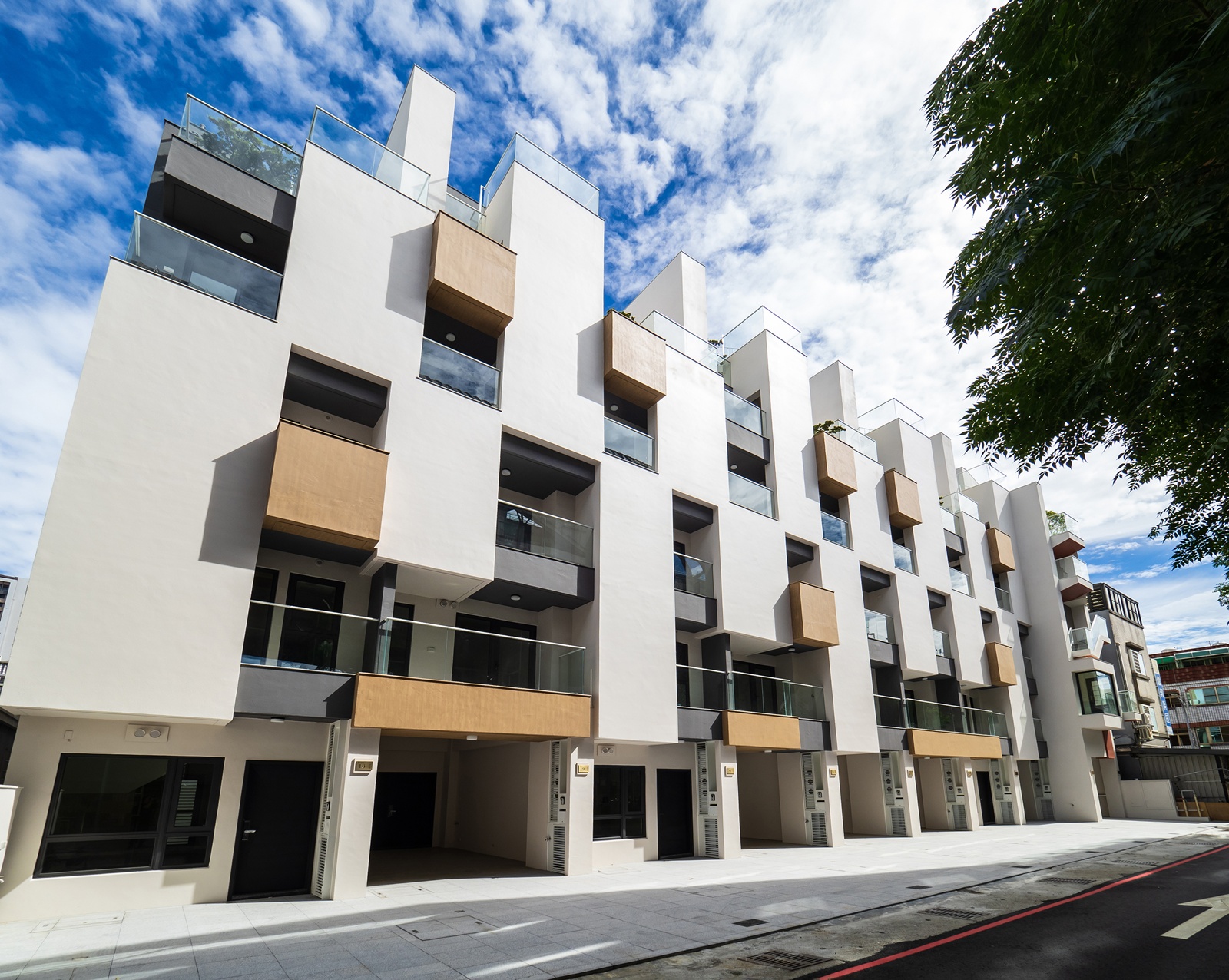 本案榮獲 2026 米蘭設計大獎 MILAN Design Awards – 金獎。本案為連棟式透天別墅建築設計,採日系都會建築美學,以「道為首、光為局」作為核心。「道」象徵動線與量體的流動性;「光」則依日照形塑建築的秩序與場景。外觀以米白主體結合暖棕色木質塊體,並以少量深灰色量體襯托層次。垂直樓梯以醒目紅棕色飾面呈現,成為立面焦點。整體設計重新定義公私領域的界線,透過窗景引入景色,框構日常的視覺節點,形塑開放且流動的生活場景。