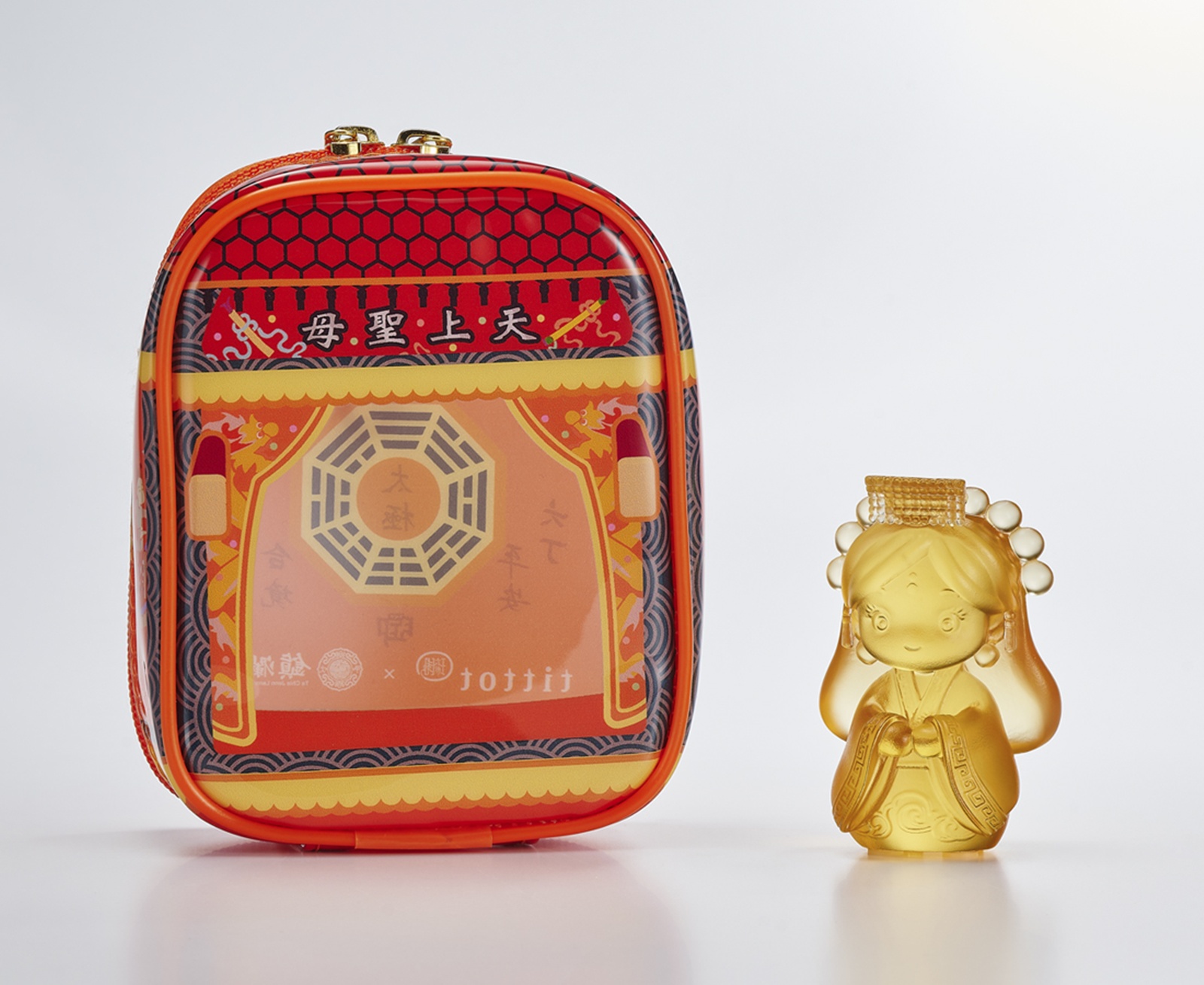 tittot琉園設計總監陳俊維表示:「此次聯名希望讓信仰不再只是節慶限定,而是能夠融入日常穿搭與移動場景之中。透過娃包形式的轉譯,讓更多人能自在地帶著媽祖出門,無論通勤、旅行,甚至走進遶境隊伍,都能感受到『隨行保庇』的安心力量。」