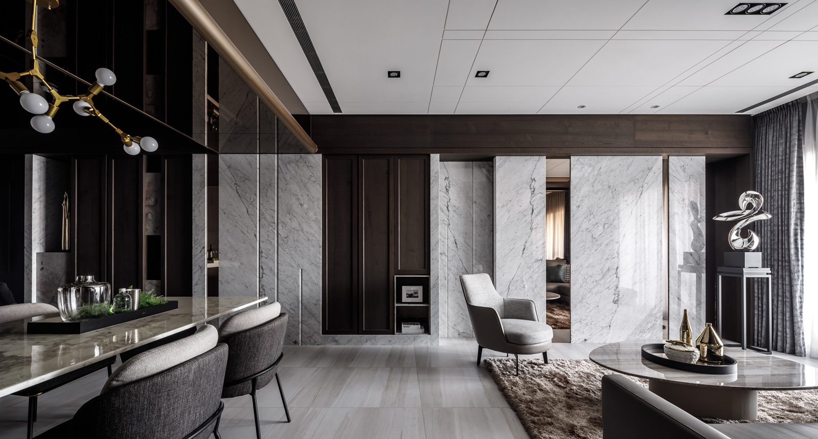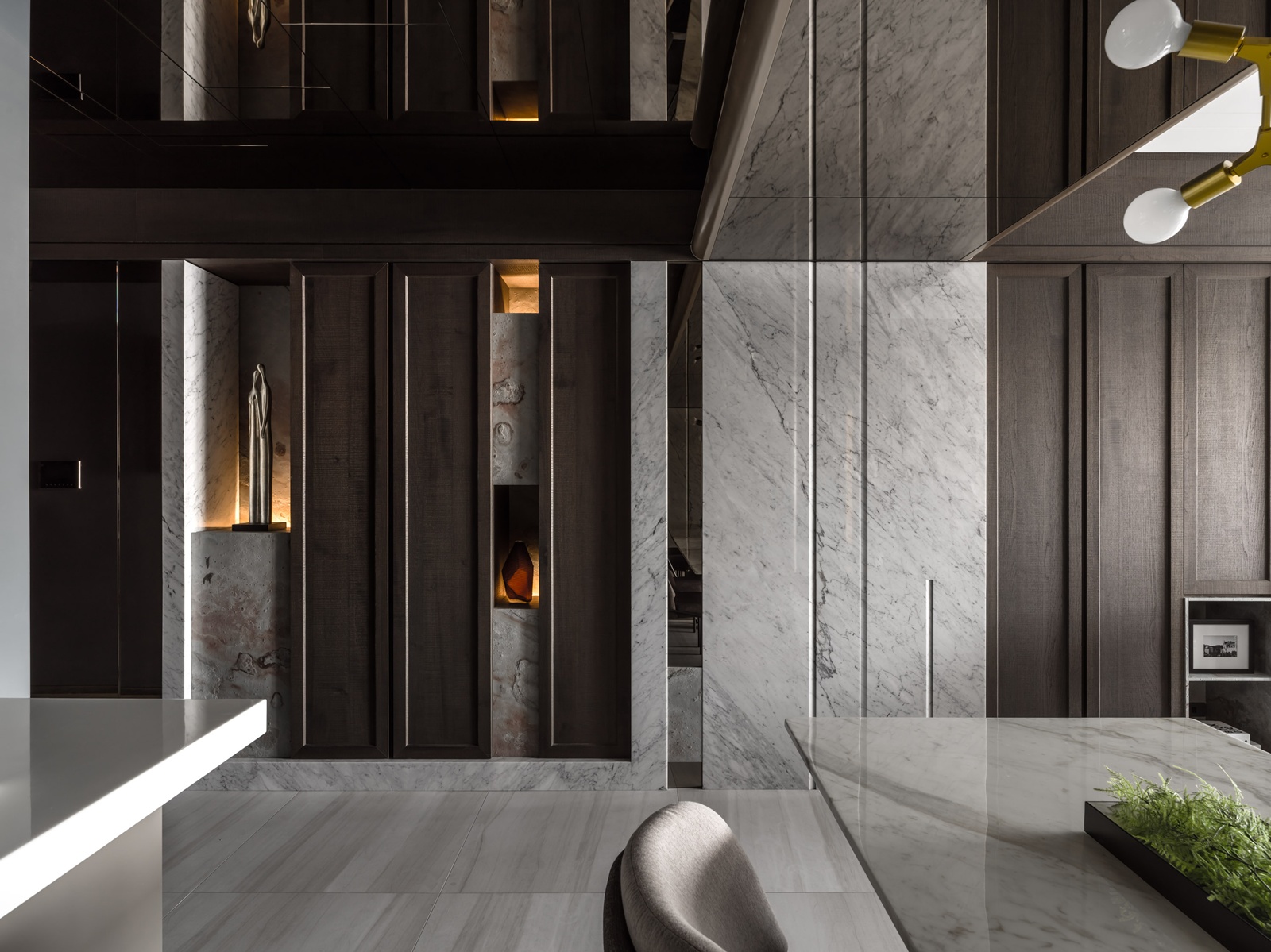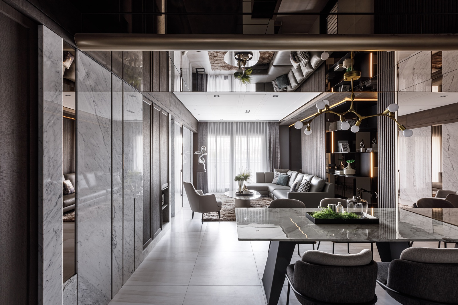 本案榮獲2025 波蘭Houzee設計大獎 Houzee Awards – 白金獎。本案為實品屋規劃案,旨在於有限的空間中挹注張力和美感。整體設計先是運用石材、木料、鍍鈦金屬等元素做鋪陳,以創造豐富的視覺層次,而後再利用鏡面材料與開放式設計,強化空間的通透感。透過恰到好處的格局規劃、線性設計和材料應用,可構建出兼具品味與實用性的住所環境,替未來的住戶提供理想的居住選擇。