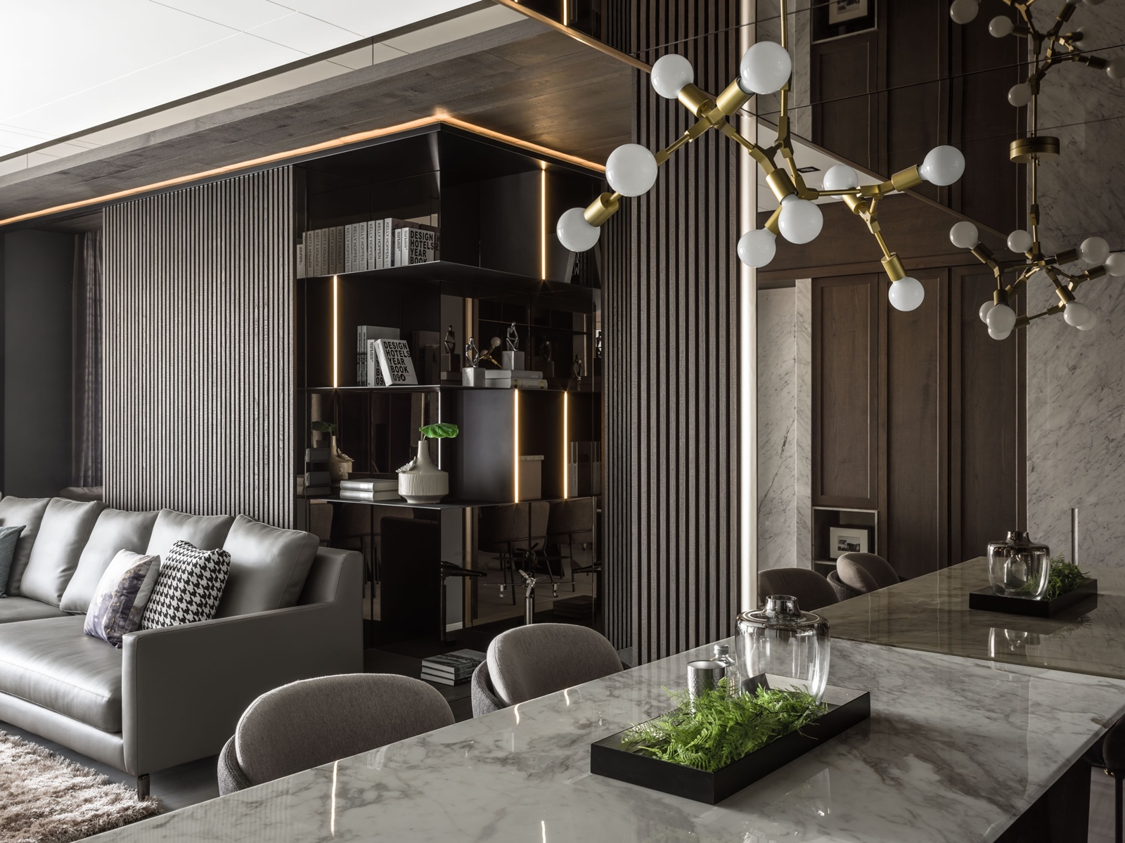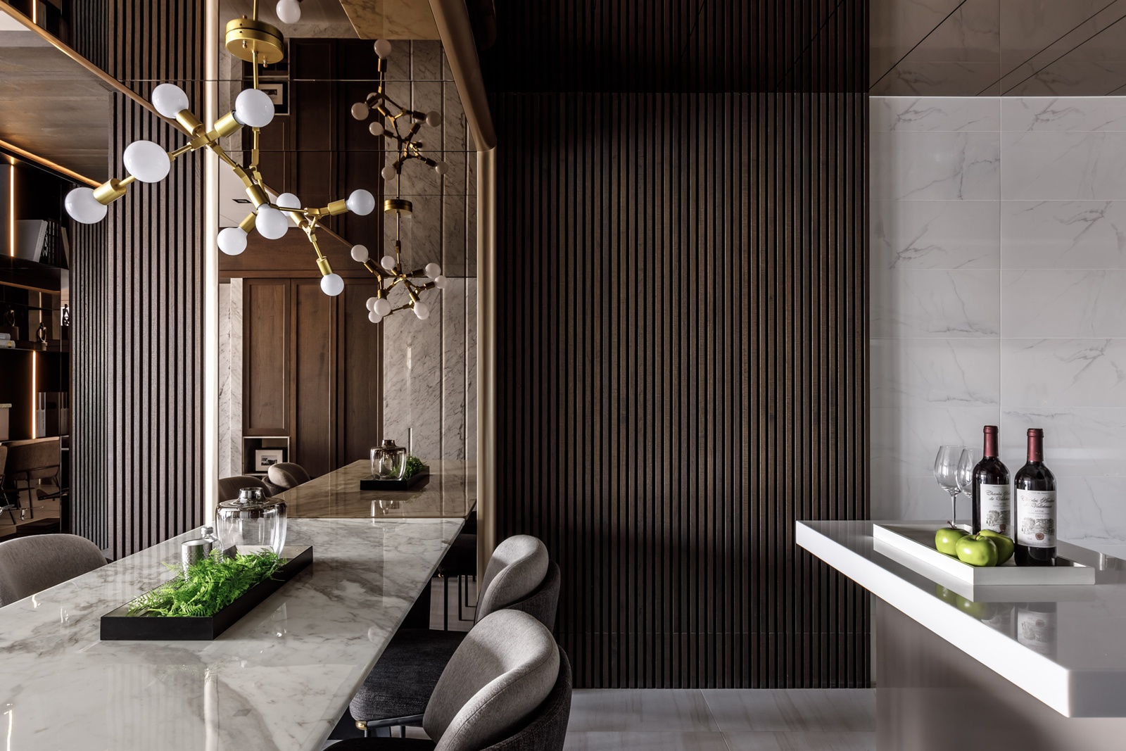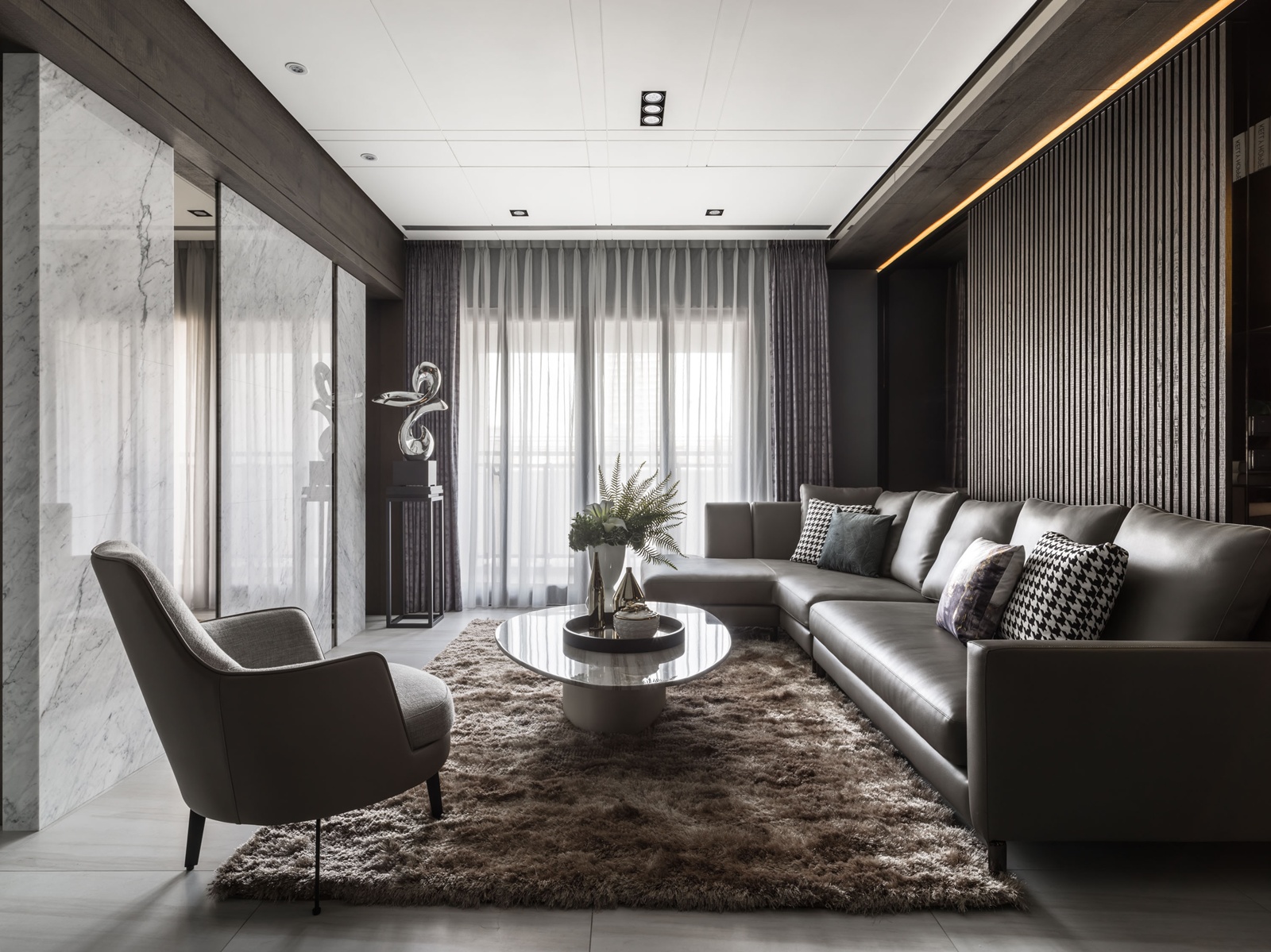 本案榮獲2025 波蘭Houzee設計大獎 Houzee Awards – 白金獎。本案為實品屋規劃案,旨在於有限的空間中挹注張力和美感。整體設計先是運用石材、木料、鍍鈦金屬等元素做鋪陳,以創造豐富的視覺層次,而後再利用鏡面材料與開放式設計,強化空間的通透感。透過恰到好處的格局規劃、線性設計和材料應用,可構建出兼具品味與實用性的住所環境,替未來的住戶提供理想的居住選擇。