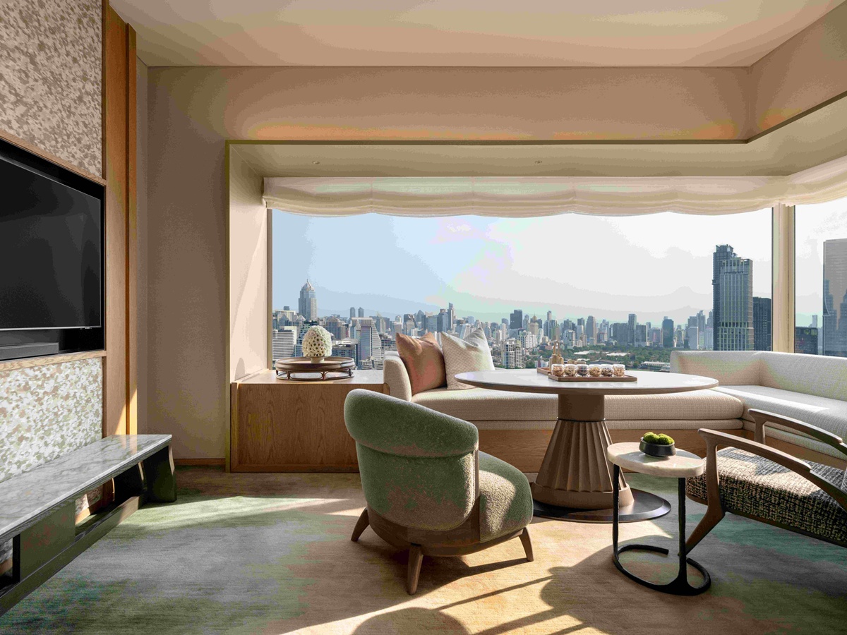 坐落於席隆路(Silom Road)頂端的曼谷都喜天麗酒店,本身就是一座微縮的泰國現代設計史。對於設計師而言,重新開幕的空間展示了如何將傳統的泰式優雅與國際化的簡潔線條完美縫合。從酒店大廳到客房,每一處轉角都能看見材質運用的巧思——絲滑的織物、溫潤的木質與現代感的金屬構件交織,構築出一種既具備歷史厚度又不失輕盈感的當代氛圍。在這裡,空間不只是居住的容器,更是一場關於「在地化設計(Contextual Design)」的實體教學,讓專業者在舉目所及之處,都能領略到設計大師對文化細節的精準提煉。