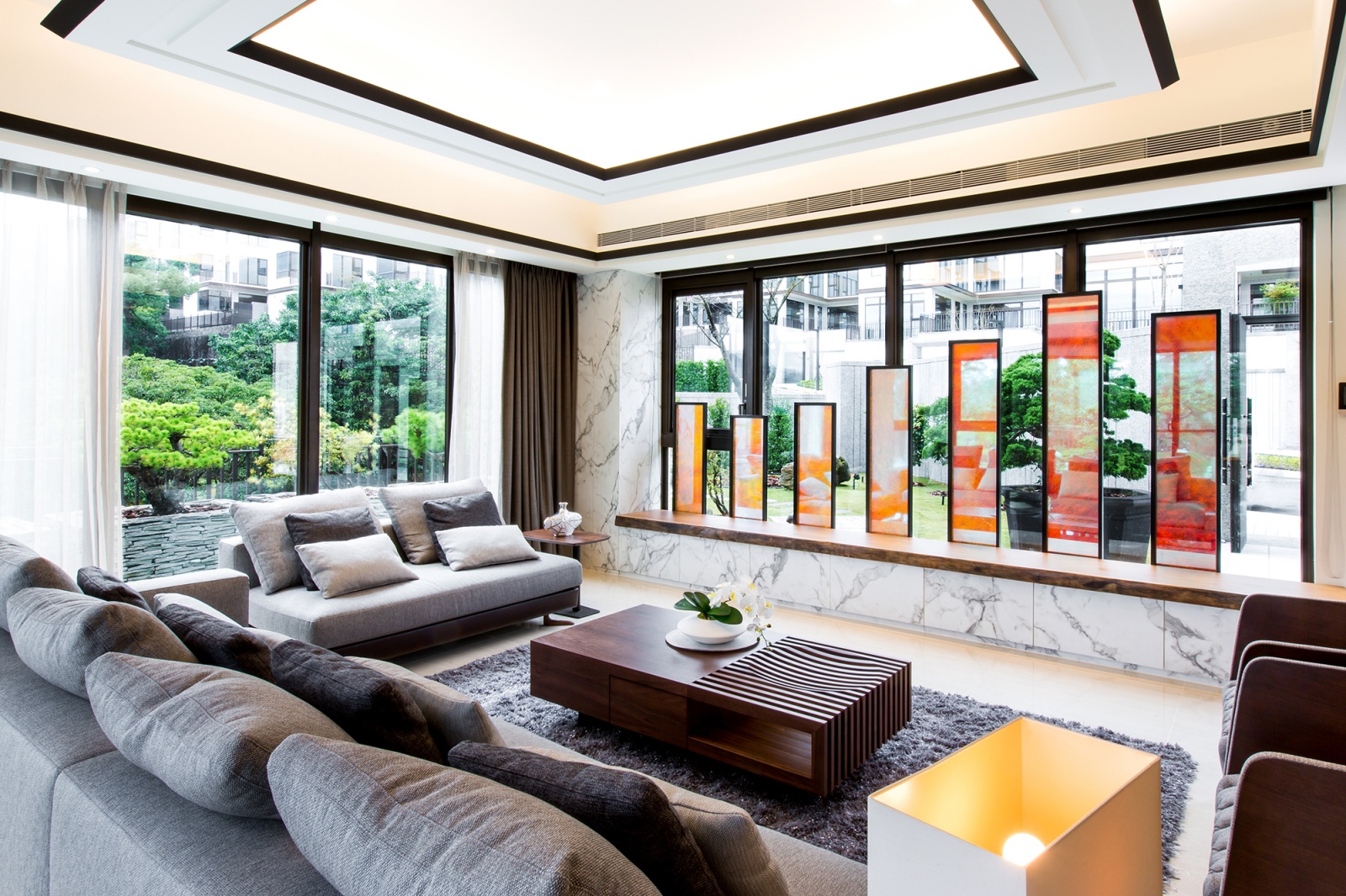- 景窗序列:大面積的落地窗將自然光線援引入室,減少對人工照明,導引出明亮且節能的室內脈絡。