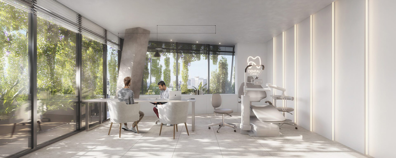 This project won a closed competition. Aware of the impact of construction on the environment, we dared to propose a building with only 15 floors because it had 10% less total built area (due to less repetition of circulation) and a 20% smaller façade area than a 25-storey building (permitted on site) with the same total net sales area (11,000m2). In other words, with a bold initial decision, we reduced construction costs and respected the environment.