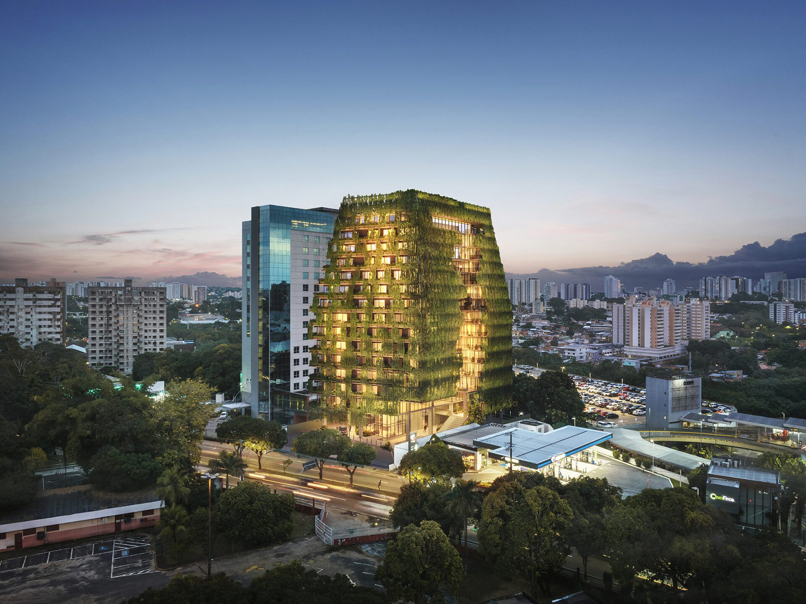 植被立面帶來的效益相當豐富,包括空氣淨化、降溫、隔熱、降低空調需求、過濾午後陽光(使得建築可採用簡潔的無色玻璃)、減少亞馬遜地區常見的眩光,以及降低人工照明的依賴。除此之外,也提供多項健康益處,如提升幸福感、增進生產力與創造力、加強免疫力、降低皮質醇與心率、舒緩憂鬱並穩定血壓,讓人們在日常工作中更貼近自然。