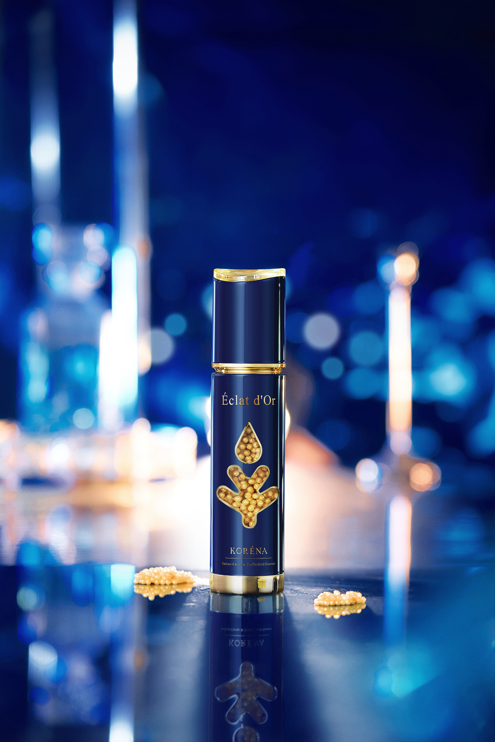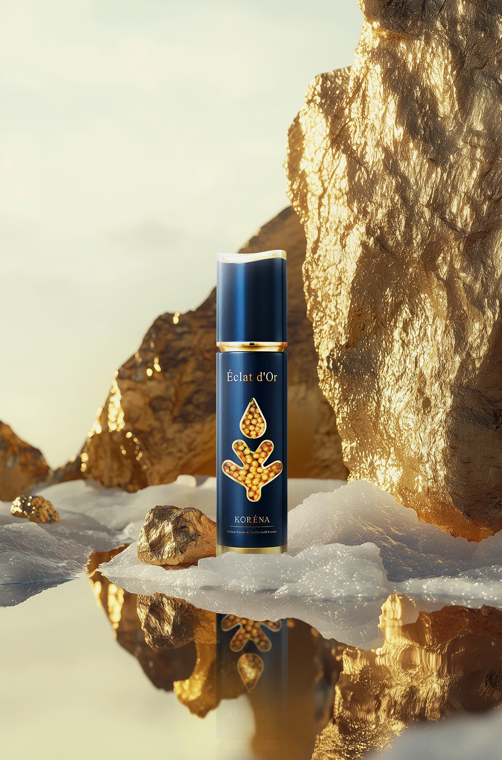 本案榮獲 2025 雪梨設計大獎 Sydney Design Awards – 金獎。KORENA璀璨時空魚子松露金萃精華,外觀以深藍與金色極簡點點設計凸顯奢華質感。象徵海洋與魚子完美的融合,嚴選鱘魚子醬與鮭魚卵雙重珍稀精萃,富含豐富營養並提供卓越抗老修護效果。特別添加乙醯基六肽-8、精氨酸/賴氨酸多肽,結合煙醯胺、維他命C、積雪草、海葡萄、β-葡聚醣及玻尿酸,迅速改善細紋乾燥,提升肌膚彈性及光澤,使用後肌膚絲滑細緻、清爽無黏膩。