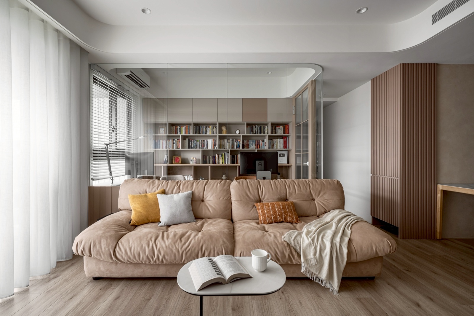 空間劃分為前方討論區和後方休憩區,主要為業主和設計師溝通,同行親友於沙發區等待,亦可做為孩子遊戲區,藉由開放式格局打造所有人都能參與談話的自由場域。透過跳脫刻板的異國風商空設計使大眾產生期待感,並將市面少見特殊元素融入門市設計,提供客戶靈感運用在居家空間,建構出引領創新和美學的獨特商空設計。