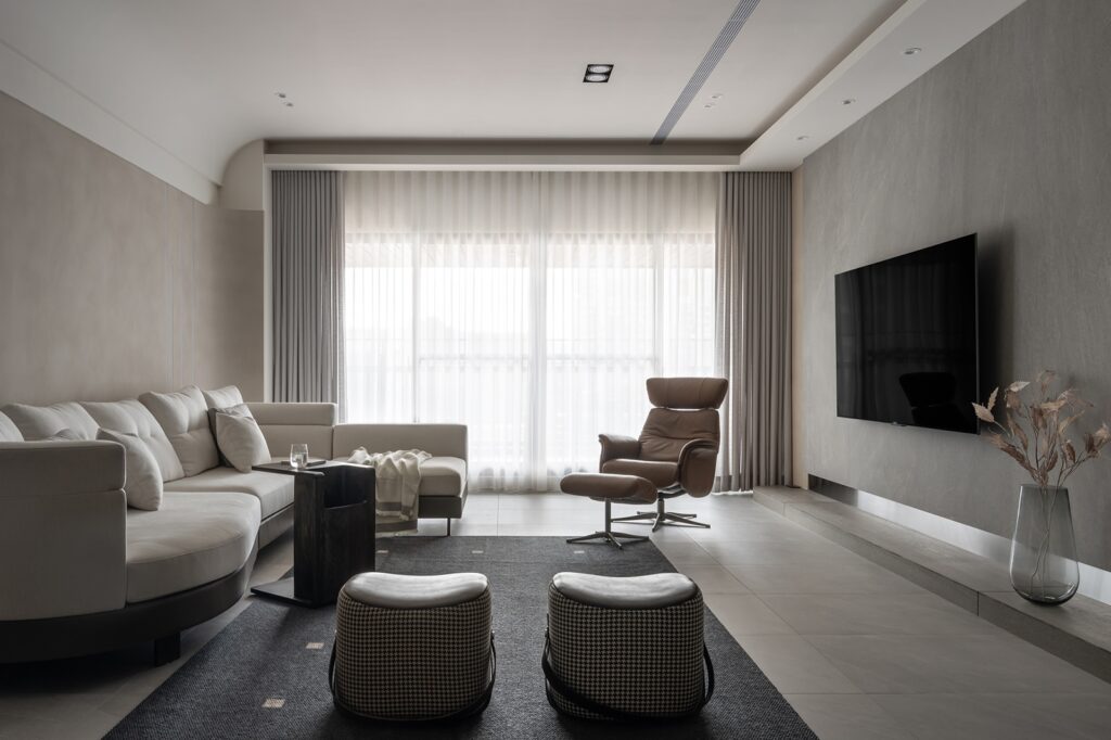 Home » Professional » 弧光掠影 描述 貝爾空間設計 弧光掠影 房屋坪數80坪 個案風格現代風 個案屋型住宅大坪數 個案屋況 空間格局 主要建材 本案為住宅設計,核心在於以圓弧語法重新校正尺度與感受。透過大面積塗料消弭結構邊界,並以灰階地坪與深色木紋建立低調對比。空間回歸比例、線條與行走節奏的控制,利用圓弧天花與牆面轉折引導視線流動;在理性結構中導入柔和層次,形塑具備秩序感與長期居住彈性的生活環境。 其他作品 查看內容 綰合之境 查看內容 弧光掠影