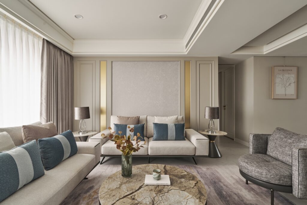 本案為私宅規劃案,設計師依據屋主喜好,採用新美式古典風格,呈現出低調卻奢華的精緻豪宅。整體格局透過巧妙的安排,不僅創造寬敞明亮的場域,亦帶來流暢的生活動線。考量到居者對於收納的需求,設置了多樣化的櫃體,提供靈活且充足的儲物機能。此外,本案設計融入智能家居技術,實現燈光、溫度、安防和娛樂系統的自動化控制,除了增添便利性之外,還能通過數據分析來優化空間的使用效率。