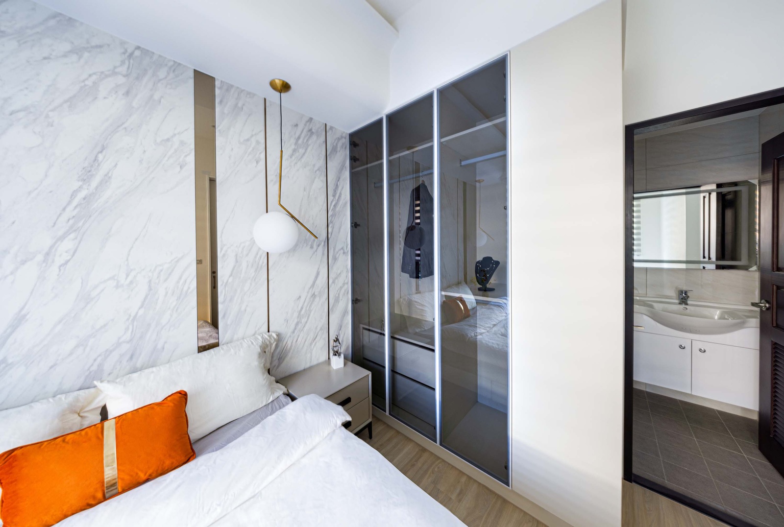 玻璃衣櫃映出柔光,增添空間深度與奢雅氣韻。