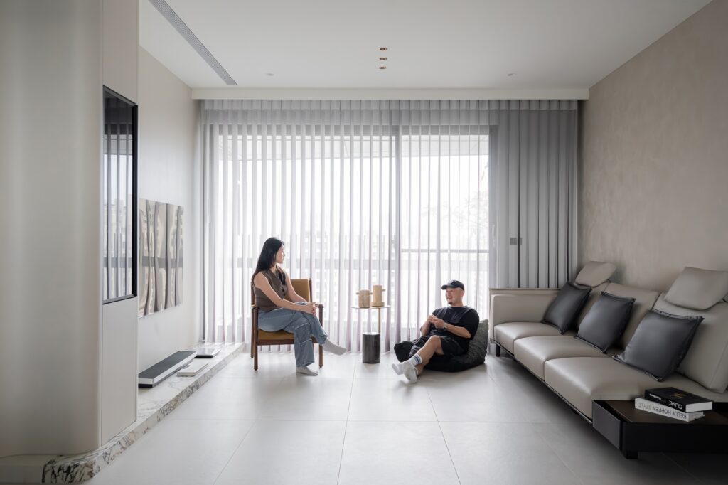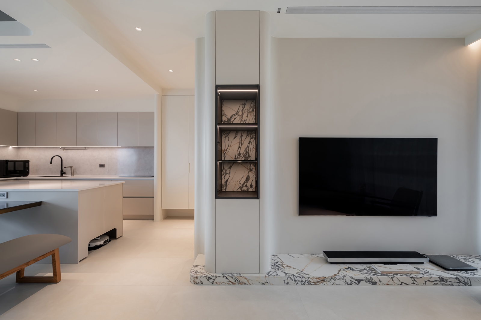 本案採柔光奶油色調結合義大利礦物塗料為題,透過自然光影、低飽和石材與木質紋理,構築理性與溫度並存的棲居。設計理念以「留白,是空間的呼吸」為精神,藉刻意的停頓與節奏緩衝,形塑空間秩序和韻律。此外,透過法式侘寂的美學語言,讓家具、藝術品與居者成為空間主角。整體以「安靜的奢華感(Silent Luxury)」為核心,捨去繁複裝飾,藉比例、光影與質地的細膩對話,呈現無需言說的高級格調。
