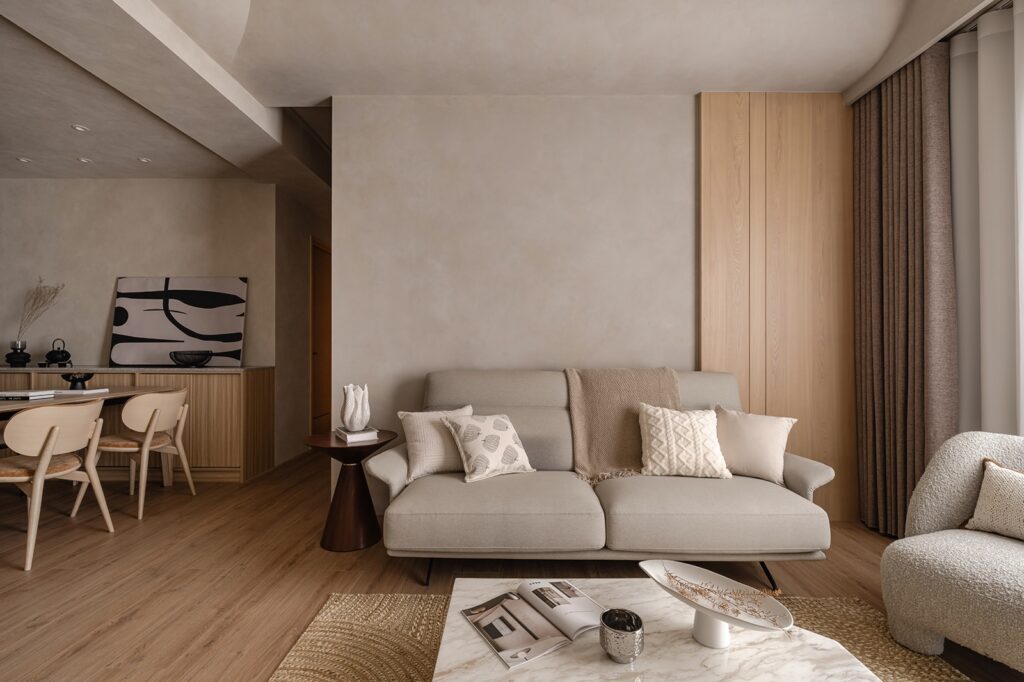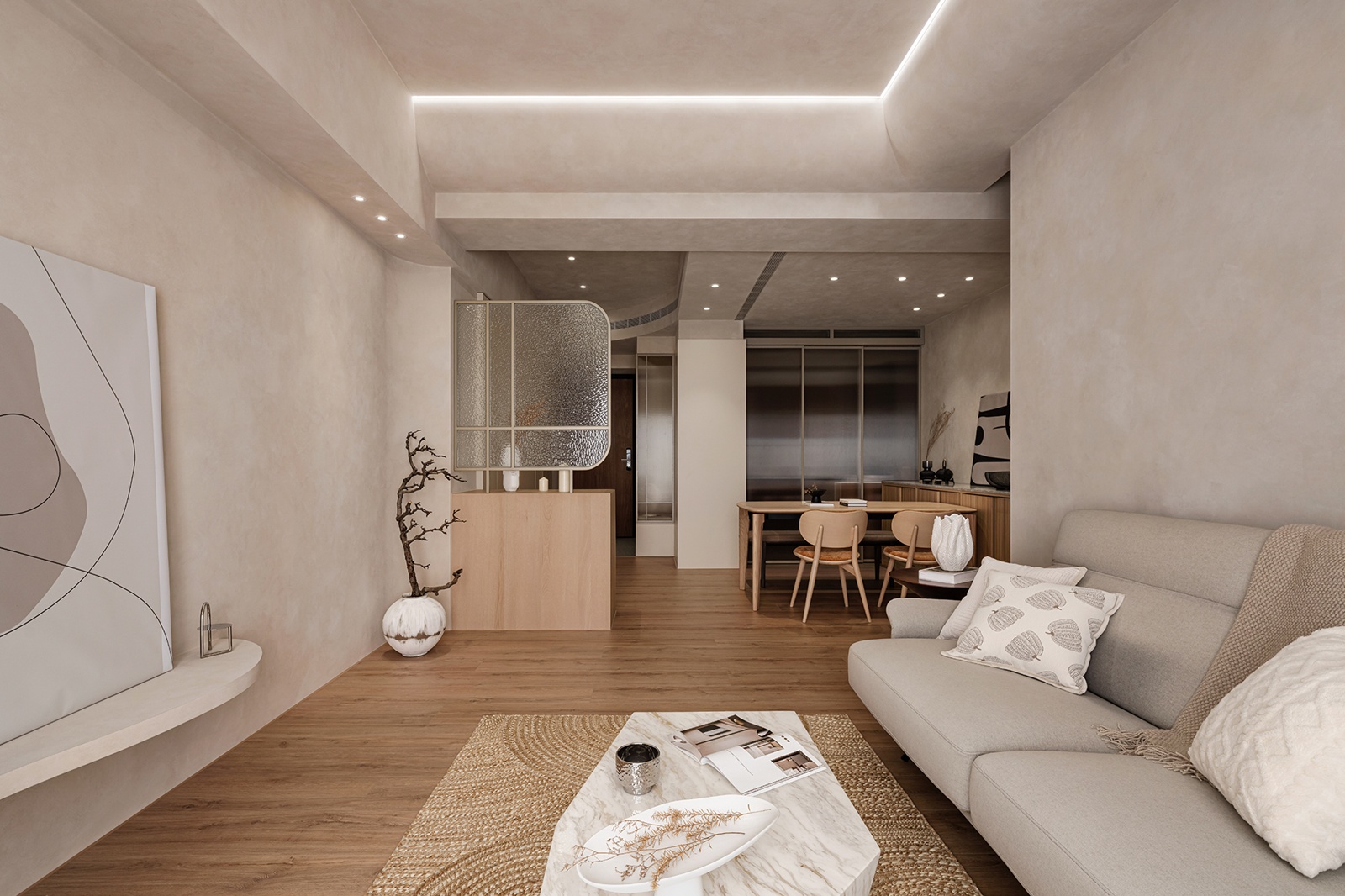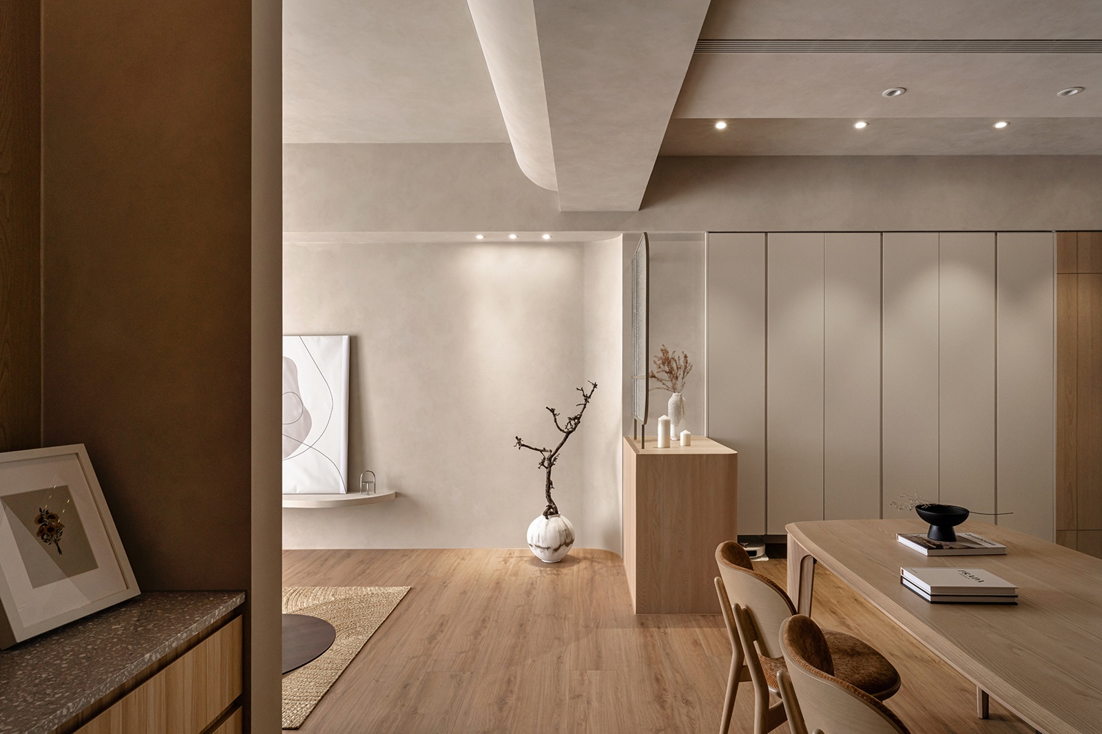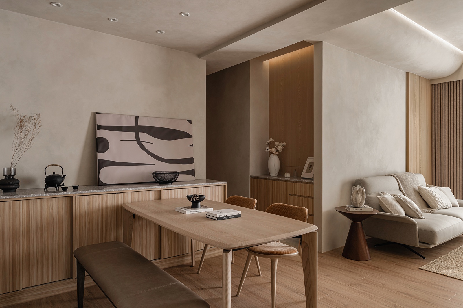 走進室內,藝術塗料鋪陳牆面肌理,筆觸般的層次為生活注入一份流動的詩意。