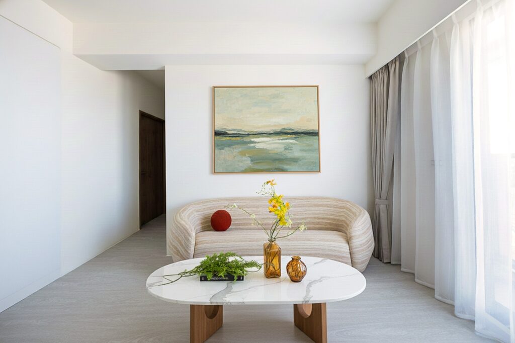 以留白為設計主軸,透過白色與木質的純淨搭配,讓光影與材質自行呼吸