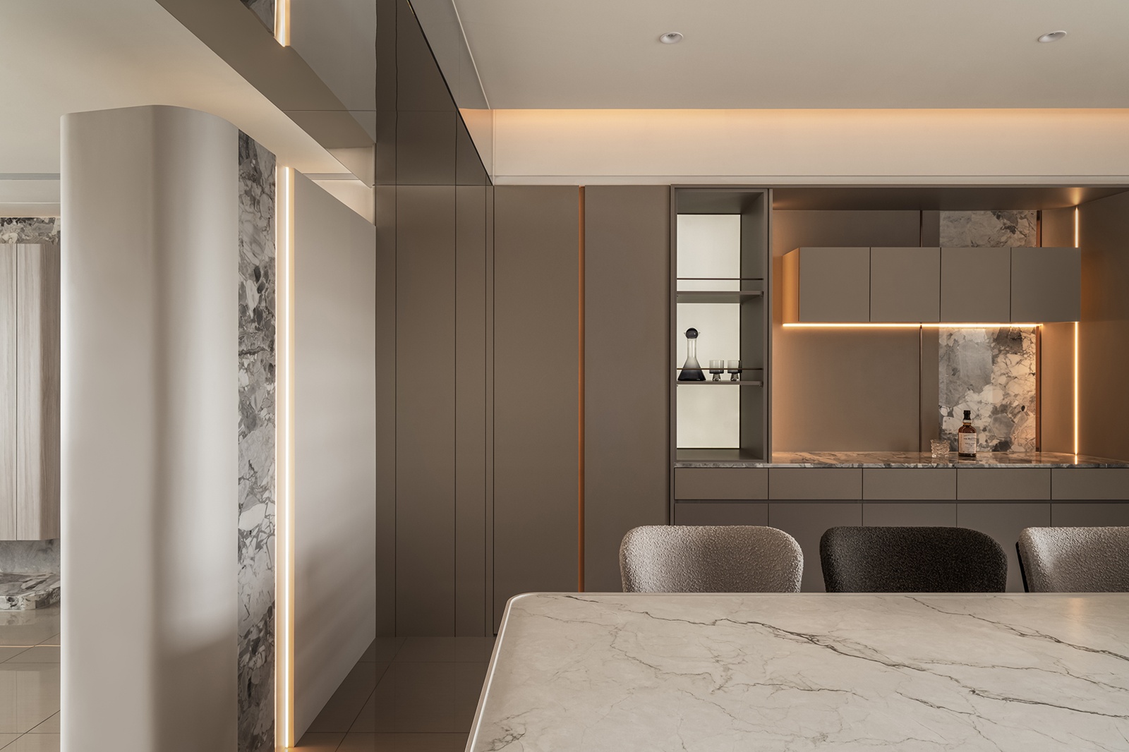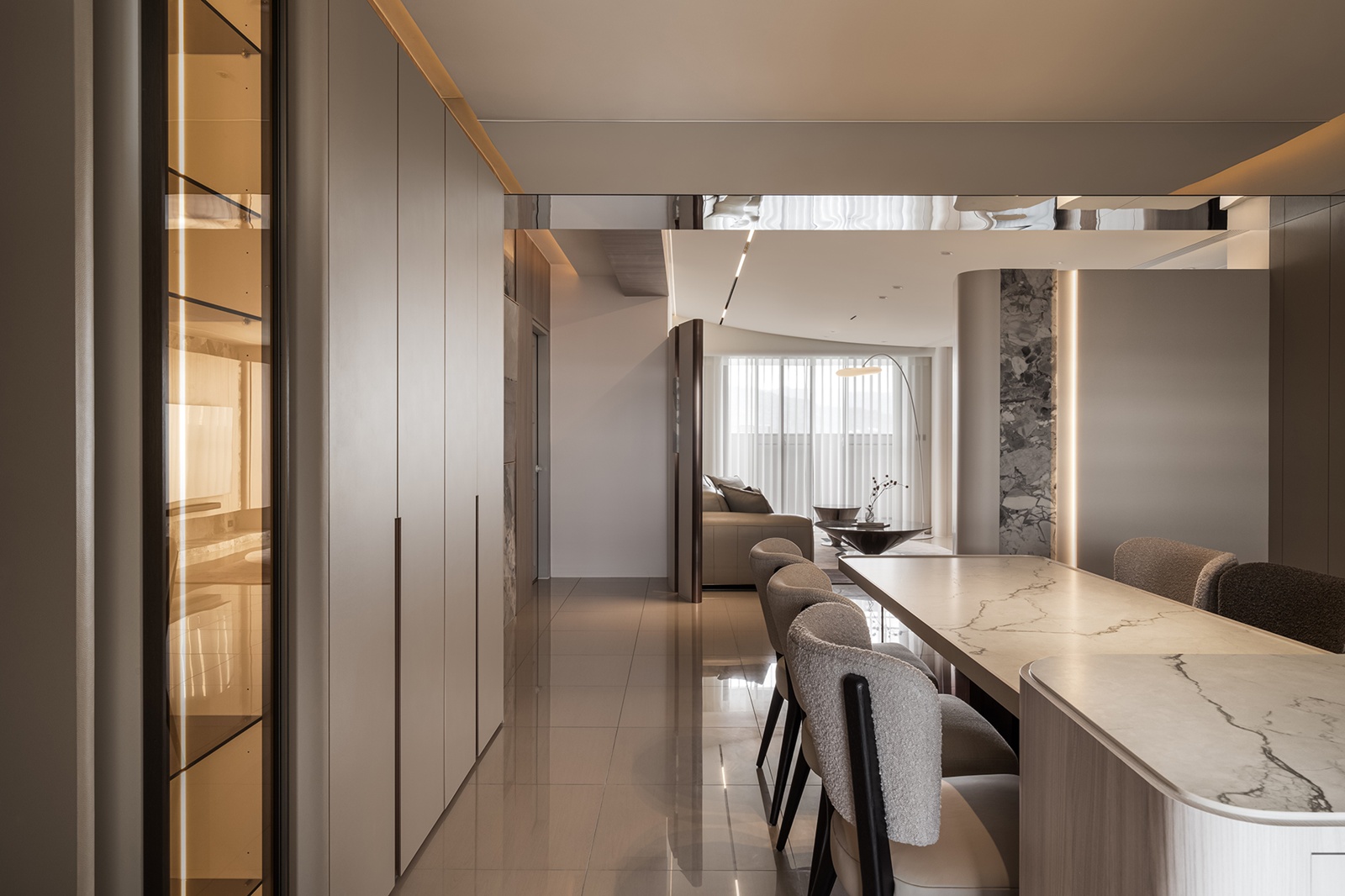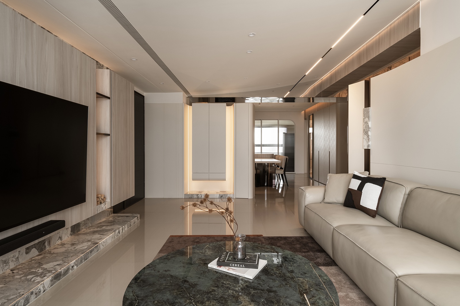 捌程室內設計有限公司 紋映柔居 房屋坪數 個案風格現代風 個案屋型 個案屋況新成屋 空間格局 主要建材 本案以「柔光石紋與微奢溫潤」作為設計主軸,創造一個開放而層次分明的居所。設計核心理念在於透過溫潤的木質與沉穩的石材進行對話,構築出介於寧靜與清透之間的生活步調。同時運用圓弧造型與精準的線性燈光,調和空間輪廓,營造舒適且協調的場域。 其他作品 查看內容 鼎峰楊宅 查看內容 光影拾暖 查看內容 弧境溫融 查看內容 紋映柔居 查看內容 逸瓏山蔡宅 查看內容 員林張宅 查看內容 太子海宴 查看內容 埔里蔡宅 查看內容 南投草屯陳宅 查看內容 台中高宅 查看內容 深邃 查看內容 草屯SPA 查看內容 幸福輪廓 查看內容 悠遊人間 查看內容 晨曦微光 查看內容 桃園大溪溫泉 查看內容 公益路招待所 查看內容 精誠李宅