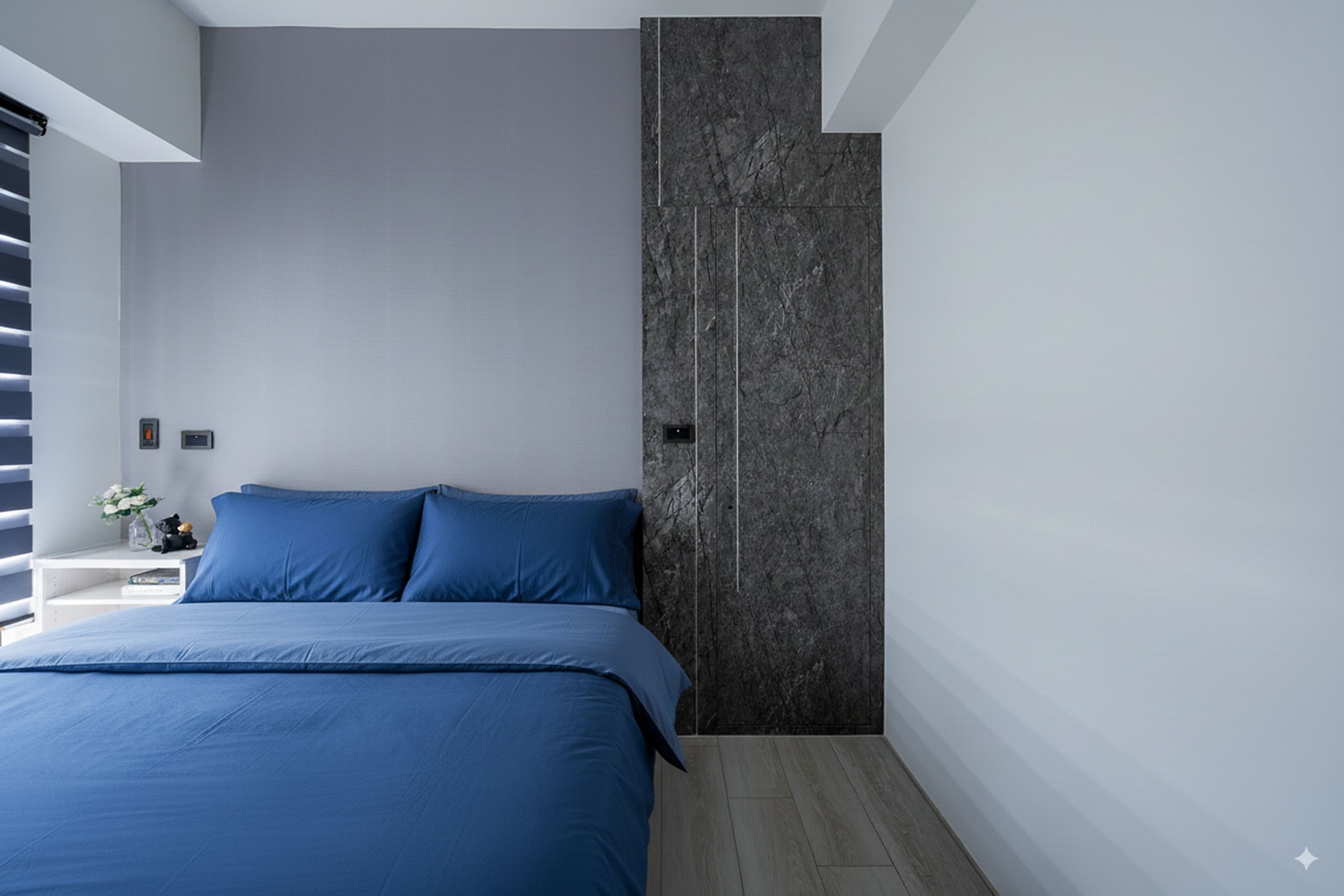 而天花預留的滑門軌道,隱含未來的彈性規劃,讓生活因空間的進退而更顯從容