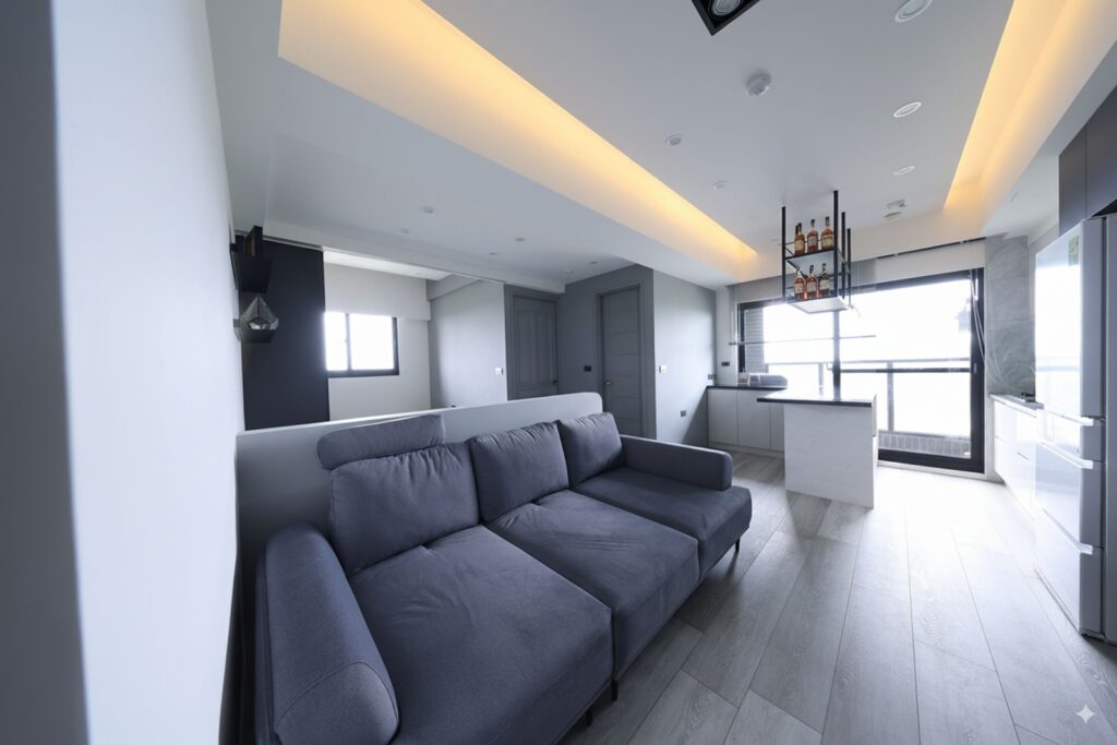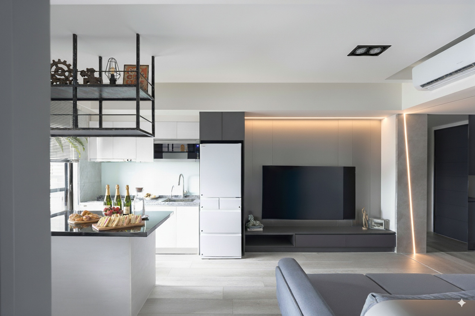 開放式格局使視野更為寬廣,既能獨自靜坐於沙發,細品威士忌的醇香,也能邀約好友共享紳士夜談。