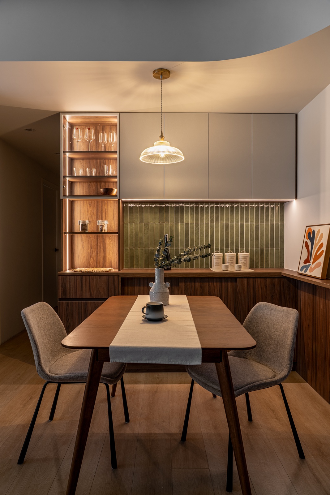 Home » Professional » 鐵藝映木香 描述 九日室內裝修設計有限公司 鐵藝映木香 房屋坪數20坪 個案風格復古工業風 個案屋型 個案屋況新成屋 空間格局3房2廳2衛 主要建材木作、系統、LED燈條、磁磚、藝術塗料、玻璃、鐵件、日本壁紙 深色木質與白色調的經典搭配,營造溫暖而不失現代感的居家氛圍黑框玻璃隔間牆,既保持空間通透感,又完美詮釋工業美學開放式廚房搭配中島設計,讓烹飪成為生活中的美好儀式訂製收納櫃體,將實用性與美學完美融合從客廳的溫潤木紋電視牆,到臥室的簡約舒適,每個角落都散發著歲月沉澱的韻味。綠色磁磚的點綴運用,為空間注入一絲清新活力,讓工業復古不再冷硬,而是充滿生活溫度。 其他作品 查看內容 鐵藝映木香 查看內容 灰調質感的都會宅 查看內容 貓步遊光之境 查看內容 美式新境 查看內容 靜謐之境 查看內容 木質生活感 查看內容 霧白藝感屋 查看內容 藝境生活 查看內容 臻藏美居 查看內容 光影築跡-暖木浮光的沉靜饗宴 查看內容 光影映日常 查看內容 悟境天章 查看內容 洲際書境 查看內容 一家三口的理想居所|義式優雅空間設計 查看內容 陽街清歌-光影斑斕的純白饗宴 查看內容 源心漫步:城市街角的寧靜篇章 查看內容 權巷幽居:青綠交織的城市綺想 查看內容 季園風華|玲瓏拱門的精緻篇章 查看內容 質感慢步調 查看內容 靜謐現代宅 查看內容 侘寂風小宅 查看內容 暖木系小家 查看內容 奶茶木質宅 查看內容 光感小家庭 查看內容 自然光感 × 溫潤質感 查看內容 柔光沐木 查看內容 輕奢極簡生活 查看內容 光.影 查看內容 風華 查看內容 光感北歐宅 查看內容 清新魅力 查看內容 純 、靜 查看內容 擁抱 查看內容 秘境 查看內容 漫遊溫馨 查看內容 溫馨‧北歐 查看內容 歡茶 查看內容 微光.輕木宅 查看內容 嚮.純粹 查看內容 恬.淨逸 查看內容 雍容.爾雅 查看內容 韞.砌琚 查看內容 廣.序幕 查看內容 縱.悠然 查看內容 闊.光蘊 查看內容 賦.淬鍊 查看內容 和.純逸 查看內容 極簡.圓舞曲 查看內容 成真.溫潤木宅 查看內容 貓 · 紳寓 查看內容 沉靜雋朗風格獨塑 查看內容 切切刀具舖選物店 查看內容 LOFT情調酩酊之間 查看內容 溫潤木藝小清新 查看內容 九日一號店 查看內容 復古工業貓寓所 查看內容 春水岸餐廳 查看內容 貓寓所LOFT風之家 查看內容 日光遇見美式透天別墅 查看內容 收納滿點清新北歐宅 查看內容 個性工業添加暖系木質 查看內容 蘊藍.從心 查看內容 微風.港灣 查看內容 貓.藝琚 查看內容 清﹒沐晰 查看內容 Sweet.輕奢 查看內容 LOFT.灰墨 查看內容 沉.謐 查看內容 藍圖 查看內容 萌.蘊綠